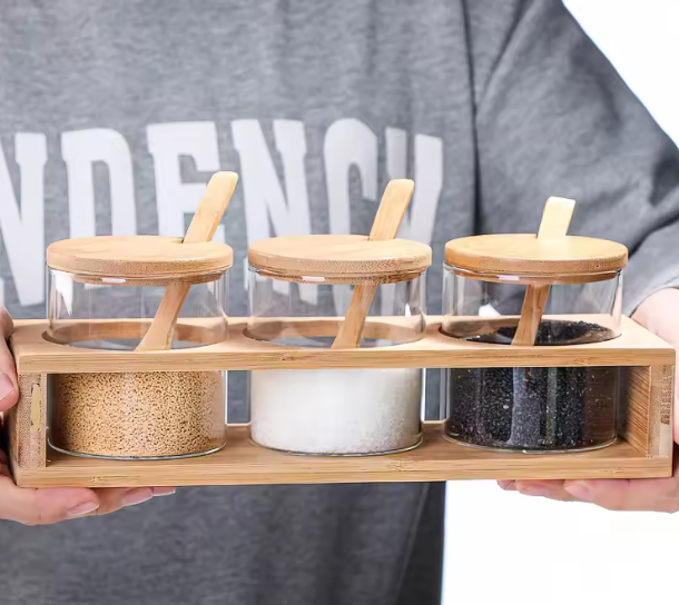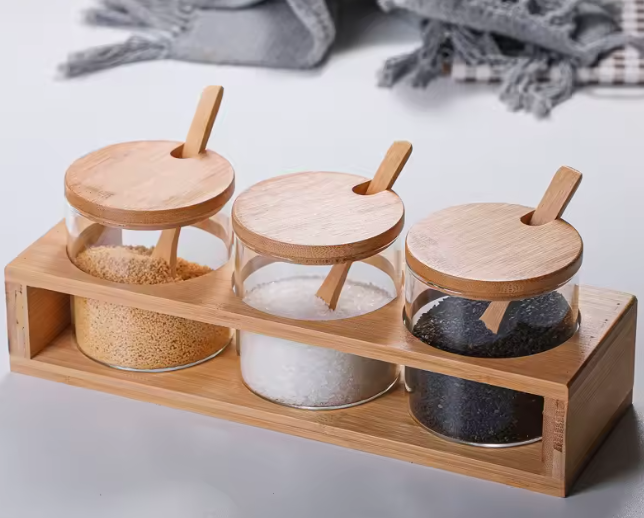 - ** Construidos para durar, estos jarrones de vidrio para condimentos son resistentes y fáciles de limpiar. La inclusión de tapas asegura que los condimentos permanecen frescos y libres de polvo, mientras que el soporte de madera proporciona a base estable y elegante para exhibirlos. Ya sea que esté preparando una comida para una cena íntima o un gran evento, estos jarrones son perfectos para cualquier ocasión.