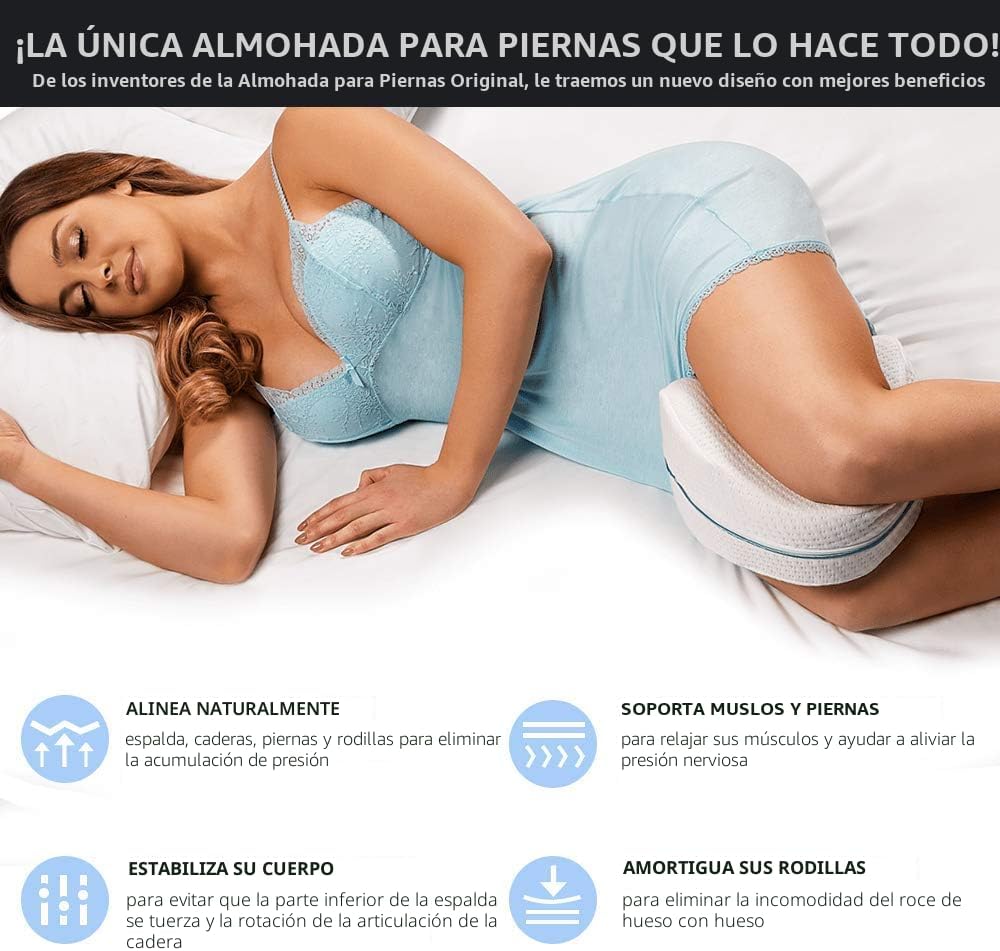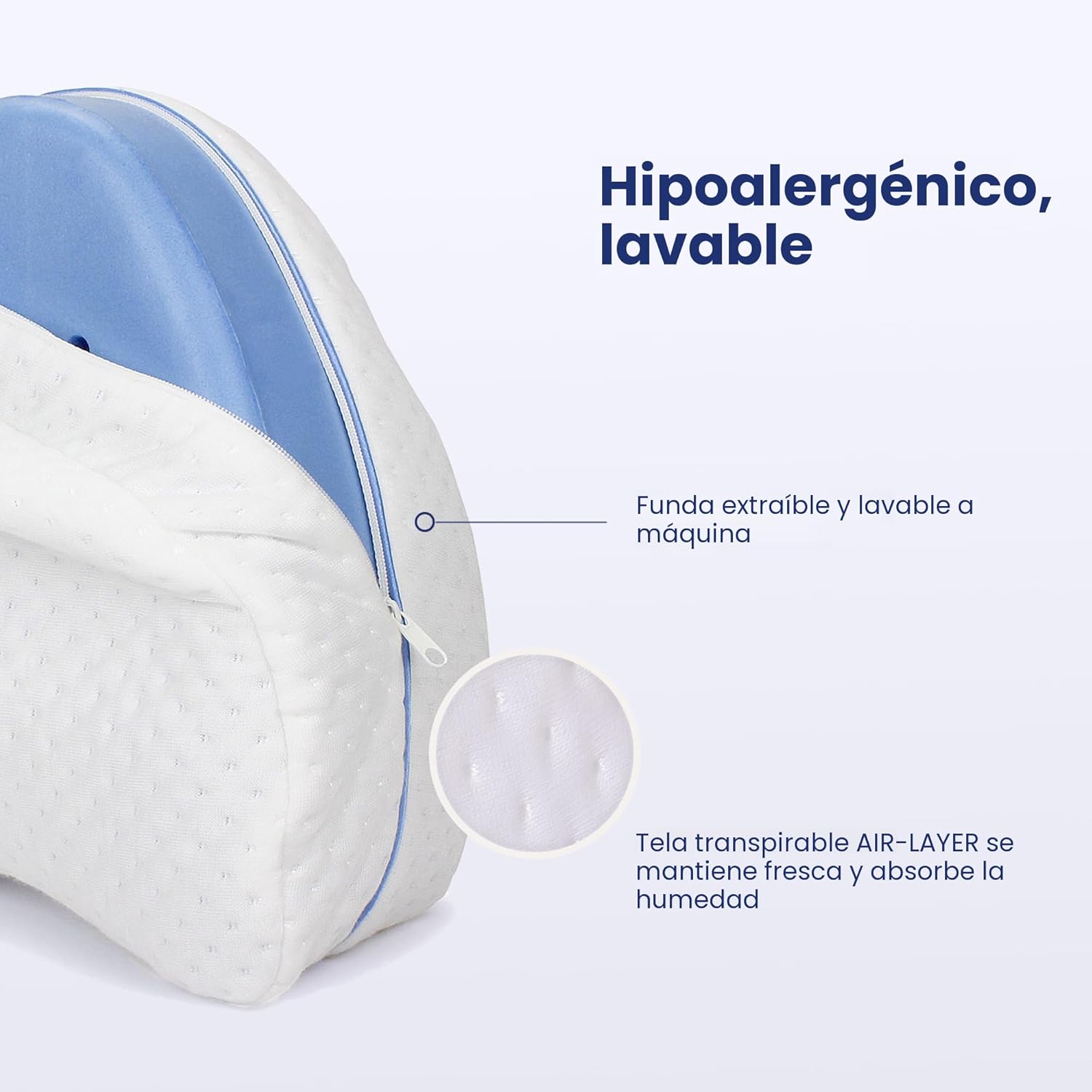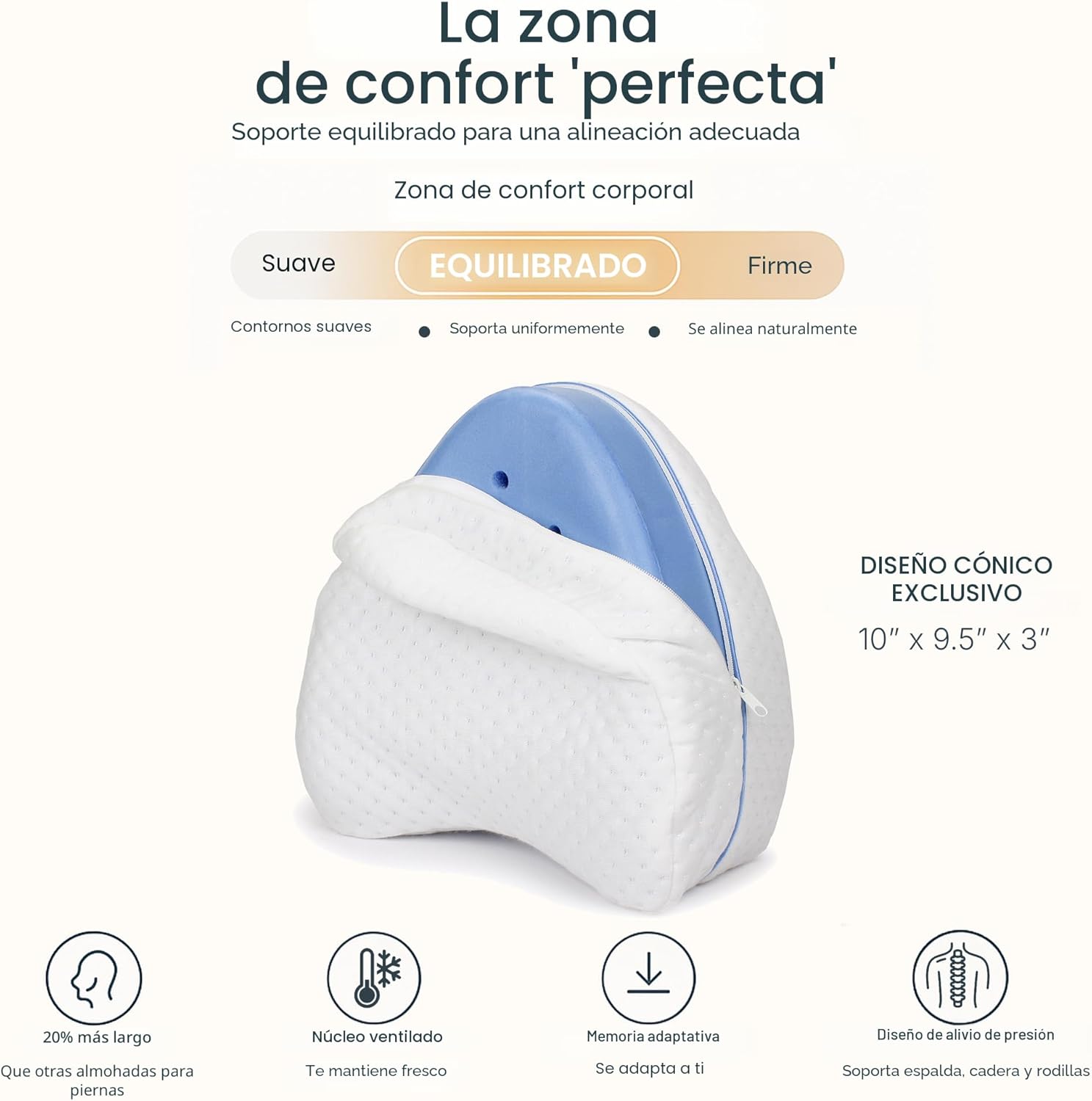 La almohada para piernas se adapta a la curvatura natural de las piernas y restaura la alineación natural, a la vez que reduce la presión en rodillas, caderas y zona lumbar. Ayuda a evitar los puntos de presión dolorosos que pueden producirse debido a la rotación de la espalda y las caderas.
