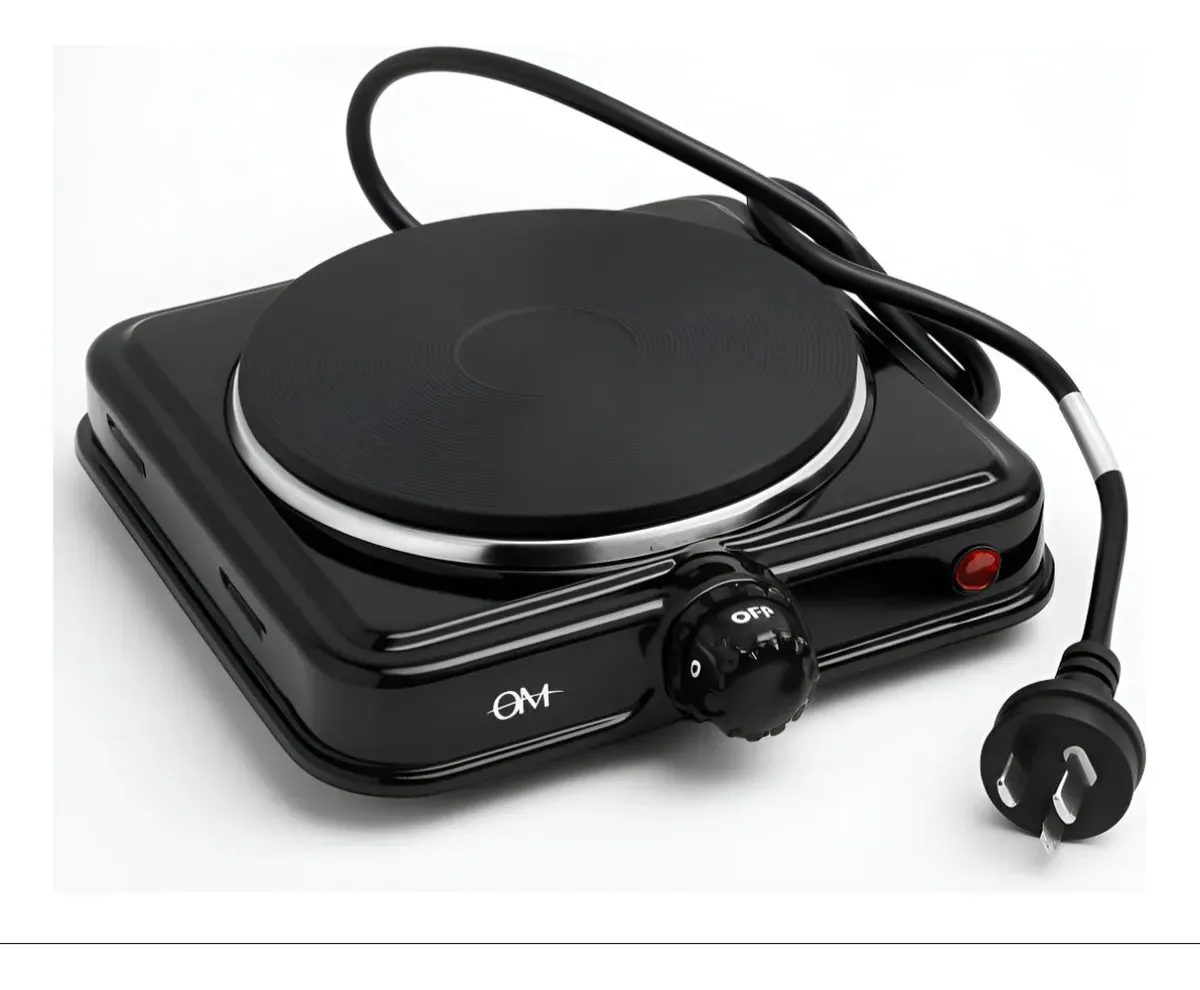 Anafe Eléctrico 1 Hornalla OM-5111 Negro: la solución perfecta para espacios reducidos y movilidad. Con una potencia de 1000W, ofrece una superficie de calentamiento rápida y homogénea, ideal para cocinar de manera eficiente en cocinas pequeñas, viajes o vehículos recreativos.