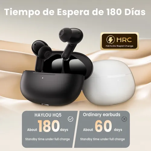 – -28dB ANC Cancelación de ruido Profundidad:Con una profundidad de reducción de ruido de hasta 28dB *, Haylou HQ5 puede reducir eficazmente el ruido en una cantimplora abarrotada, en la cabina de un avión o en el metro.