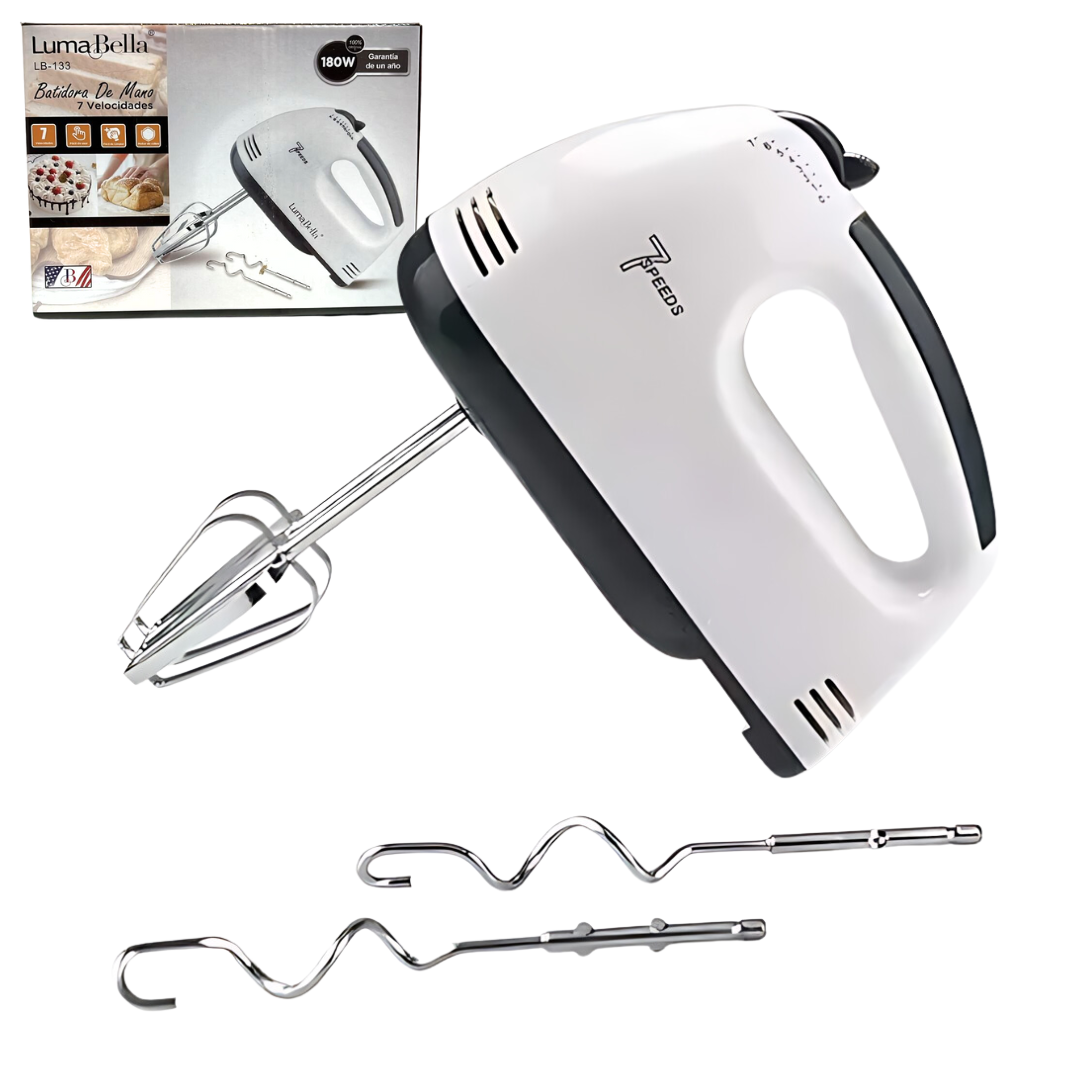 La Batidora Manual Luma Bella LB-133 es práctica, compacta y versátil, ideal para batir, mezclar y preparar una gran variedad de recetas. Con un motor de 180 W y 7 velocidades ajustables, ofrece la potencia y el control necesarios para obtener resultados perfectos en cada preparación.