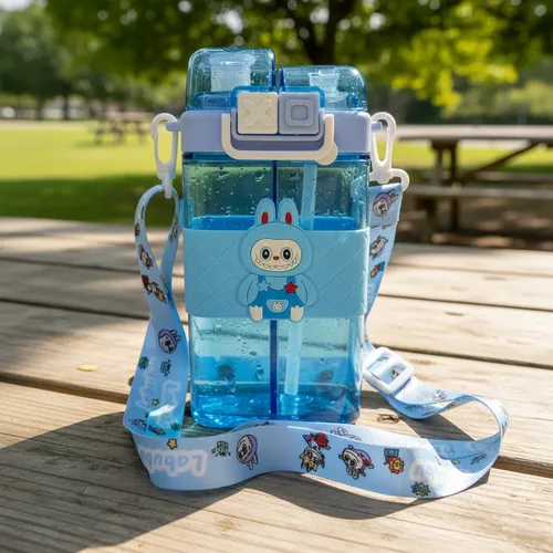 Botella Kawaii Kuromi Labubu 520ml Doble Pico 2 Divisiones WF65