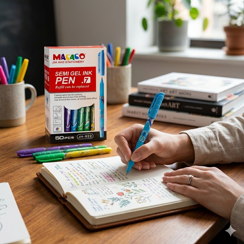 ¿Buscas una escritura fluida, constante y sin esfuerzo? 😎 La Caja de 50 unidades de Bolígrafos Semi Gel Ink Macaco .7 es la solución ideal para el hogar, la escuela y la oficina.