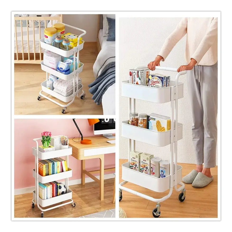 Carro organizador de 3 niveles Con ruedas Metal reforzado 43*85*33 Blanco 9003