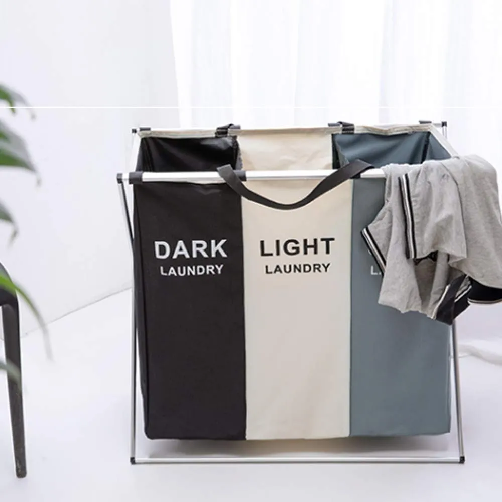 Está diseñada con 2 compartimentos independientes para clasificar previamente la ropa clara, oscura. Almacenamiento de gran capacidad, ya no se preocupe por encontrar un lugar para guardar la ropa sucia. El diseño plegable hace que esta bolsa de lavandería sea fácil de transportar y almacenar.