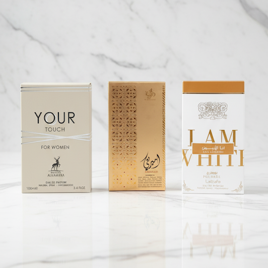 Descubre la colección definitiva con nuestro combo exclusivo que combina tres fragancias irresistibles: Your Touch, Ana Abiyedh y Ameerati.