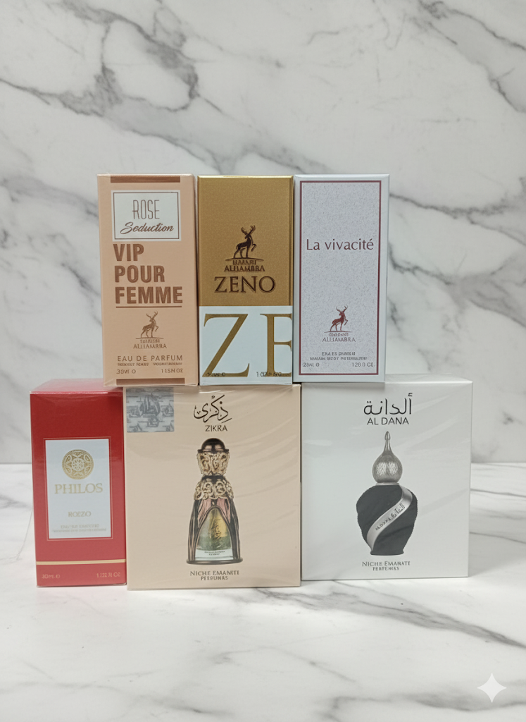 - Zikra: Una fragancia envolvente y misteriosa, perfecta para quienes aprecian los detalles exóticos y una presencia inolvidable.