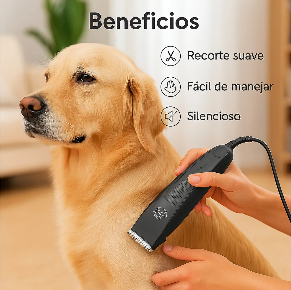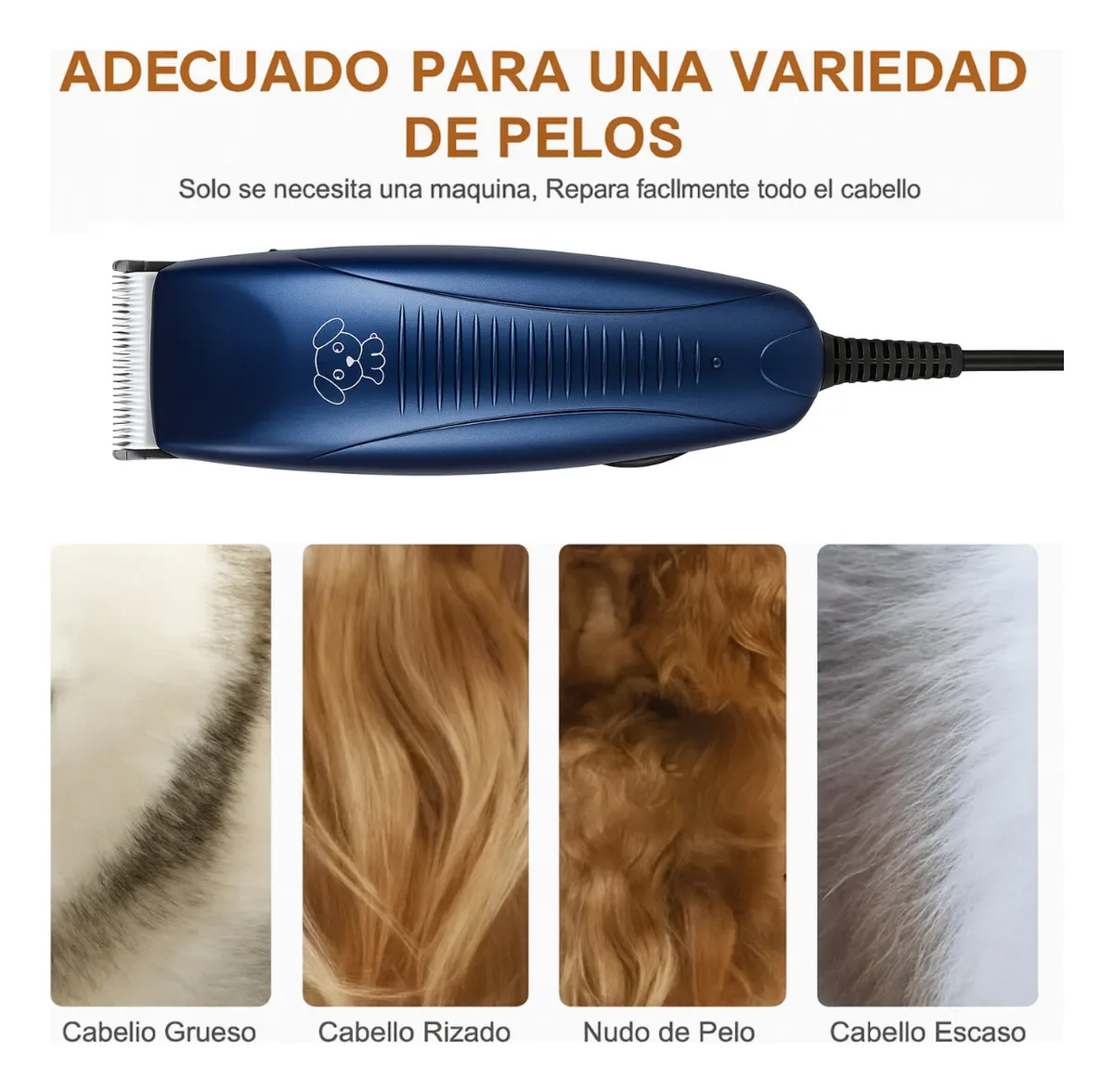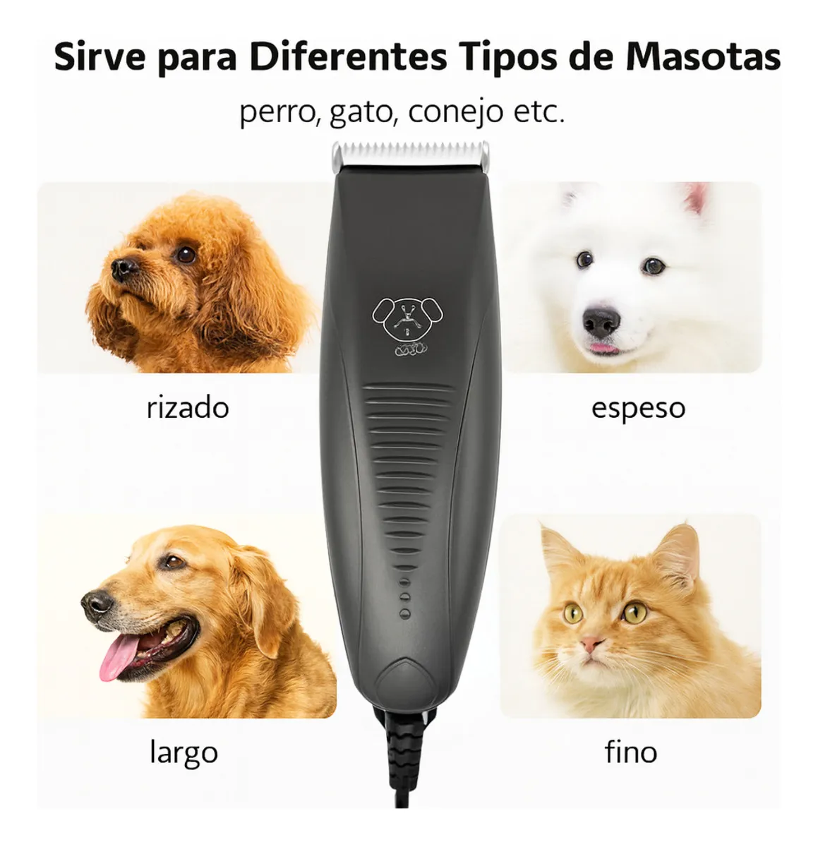 ✔️ 4 peines guía (12 mm, 9 mm, 6 mm y 3 mm): Permiten ajustar la longitud del corte con precisión según el tipo de pelaje.