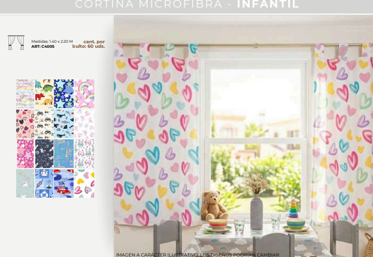 Cortina Infantil Microfibra 1.10MT Blanco Paris C4005