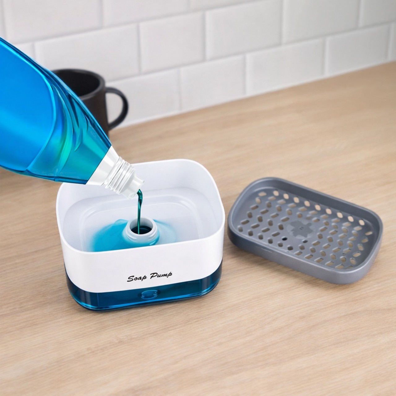 • MANTÉN TU FREGADERO ORGANIZADO – ¿Cansado de tener la encimera de la cocina llena de esponjas y botellas de jabón líquido? ¿Te molesta tener que esconderlas debajo del fregadero, sacarlas y guardarlas una y otra vez? Necesitas este dispensador de jabón con soporte para esponja que te facilitará mantener todo ordenado. (La esponja NO está incluida).