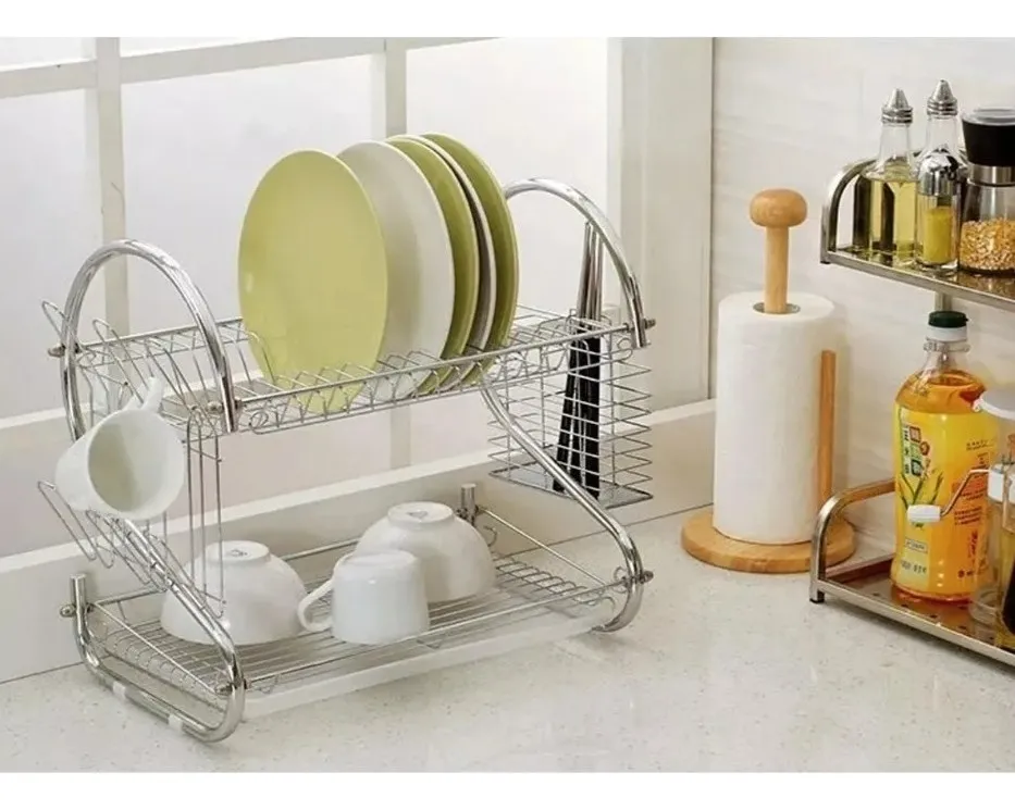 Secaplatos Escurridor De Platos Cromado Dos Niveles “Si buscas un secaplatos práctico y resistente, este modelo de acero inoxidable es perfecto. Su tamaño es ideal para cualquier lugar de la cocina y su bandeja es lo suficientemente grande para secar una gran cantidad de platos y cubiertos. Los compradores están muy satisfechos con este producto, destacando su practicidad, resistencia y diseño moderno. Es una excelente opción en cuanto a relación calidad-precio se refiere, perfecta para quienes buscan un secaplatos funcional, duradero y atractivo”.