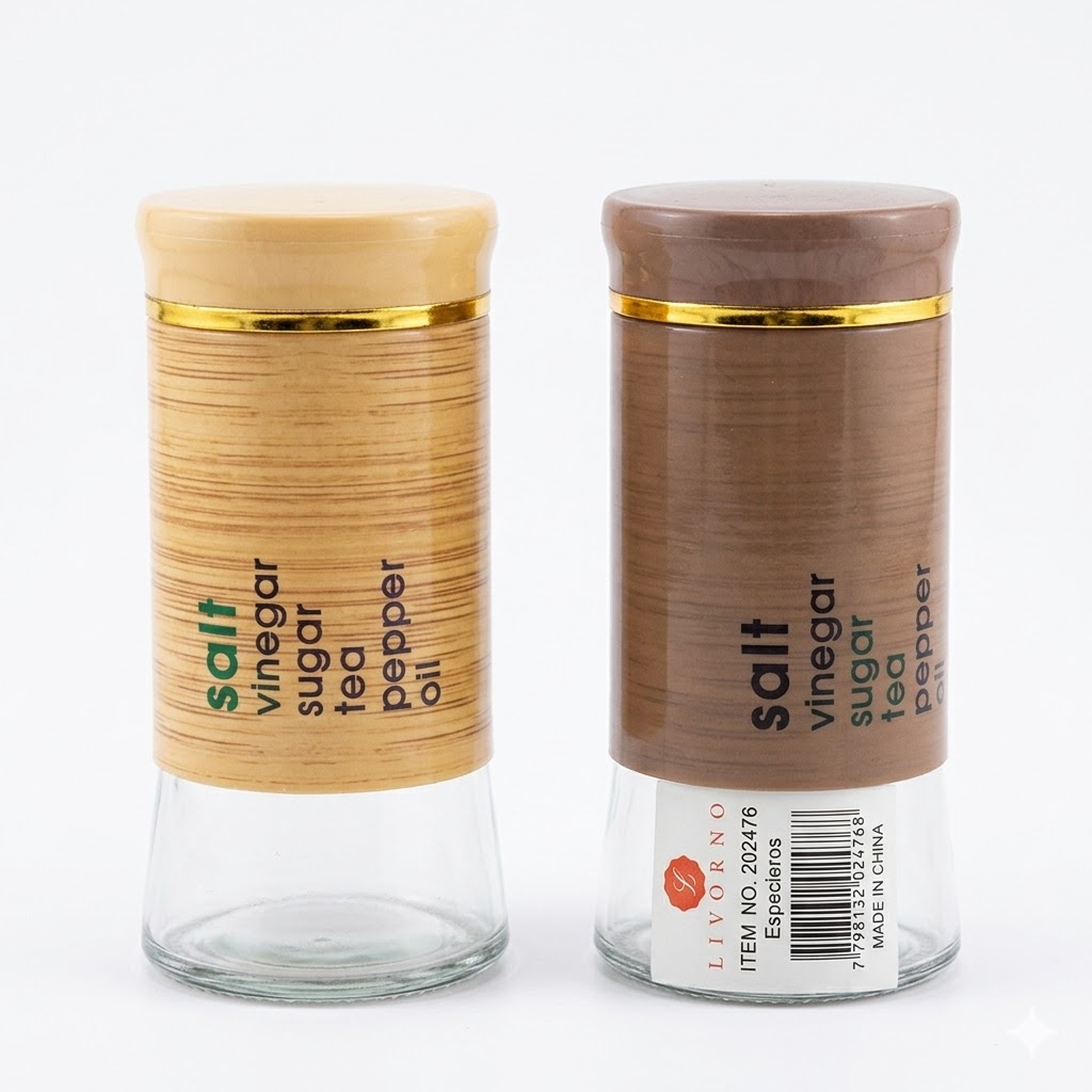 Eleva la estética de tu cocina con los especieros Livorno. Este frasco combina la transparencia y durabilidad del vidrio con un diseño superior moderno en tonos madera y acabados dorados. Su versatilidad te permite identificar fácilmente contenidos como sal, pimienta, azúcar o té, convirtiéndolo en un elemento decorativo y funcional para tu mesada o mesa.