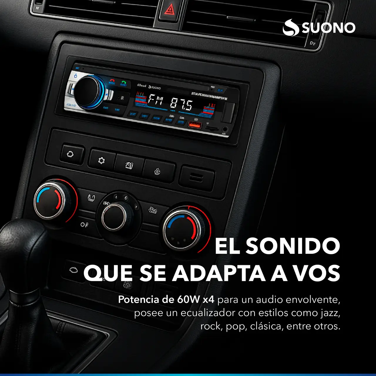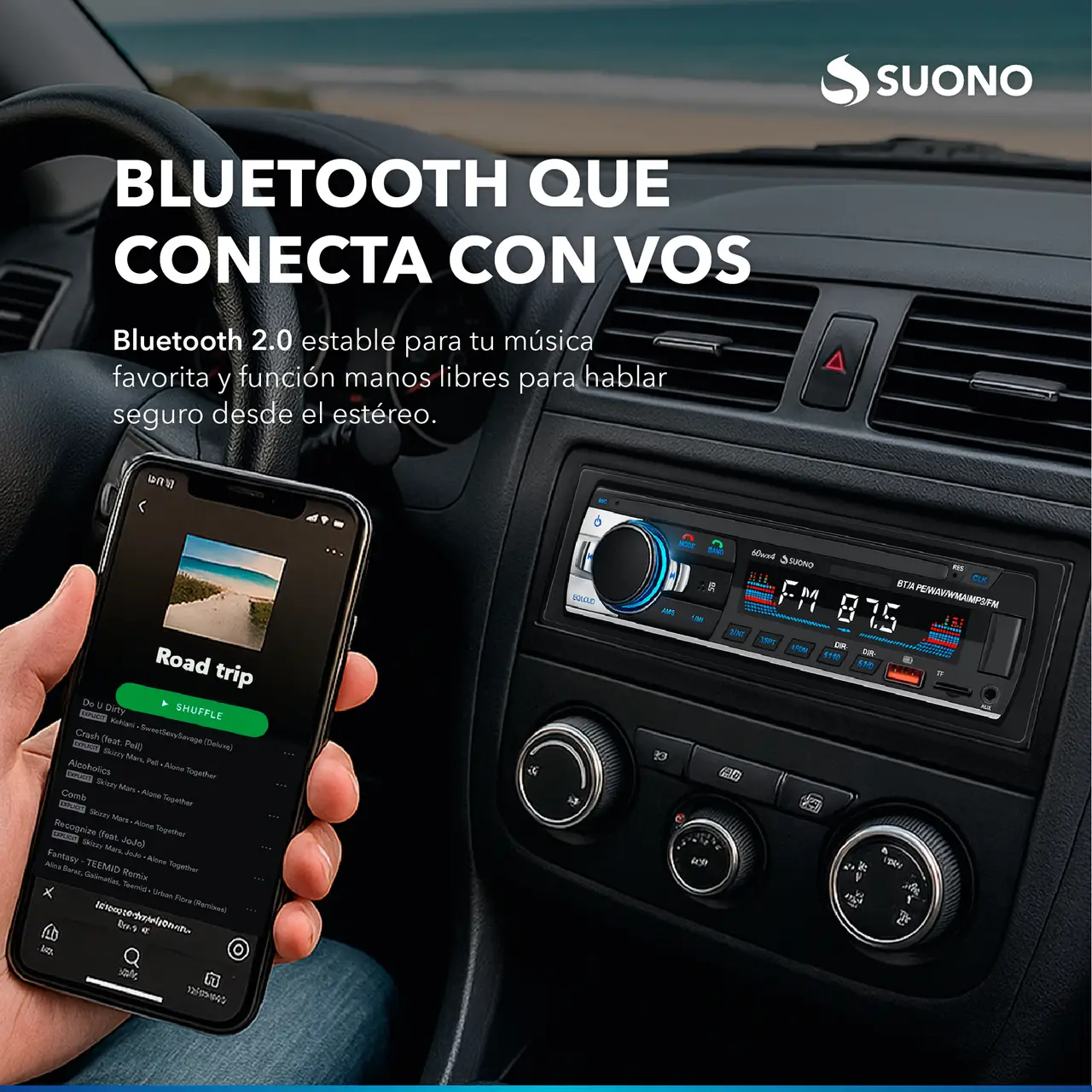 Estéreo digital para auto con Bluetooth, USB, MP3 y radio FM. Incluye control remoto para manejo a distancia.