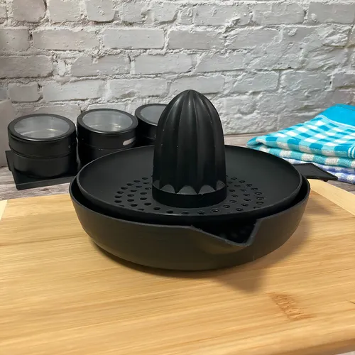 xprimidor de Cítricos Línea Fusion Carol Colores x unidad. Este exprimidor de cítricos de la Línea Fusion de la marca Carol es ideal para obtener el máximo jugo de tus frutas favoritas. Con medidas de 17 cm de largo, 17 cm de ancho, 15 cm de diámetro y 9,5 cm de altura, es compacto y fácil de almacenar. Fabricado en plástico resistente, está disponible en colores bordo, gris, negro y tiza. Su sistema a rosca facilita la limpieza, y es apto para lavavajillas, lo que lo hace muy práctico para el uso diario. Además, cuenta con una base contenedora que permite recoger el jugo de manera eficiente. Perfecto para aquellos que buscan un exprimidor funcional y de alta calidad.