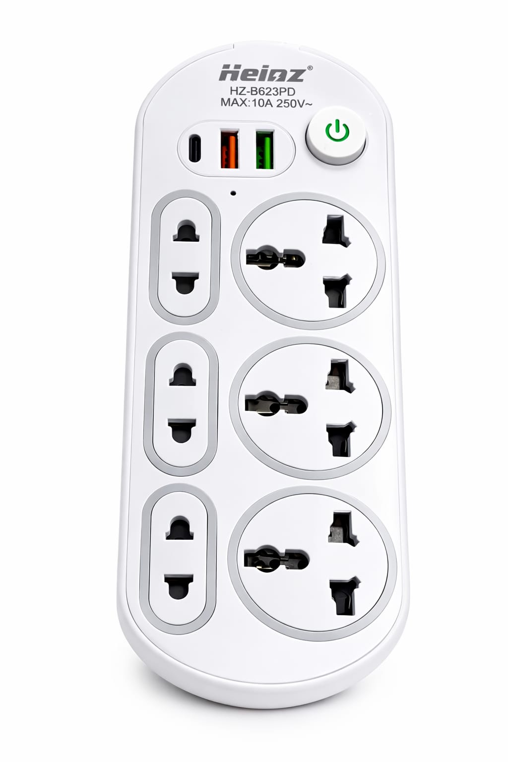 Esta es una regleta o extensión eléctrica de la marca Heinz, diseñada para múltiples conexiones.