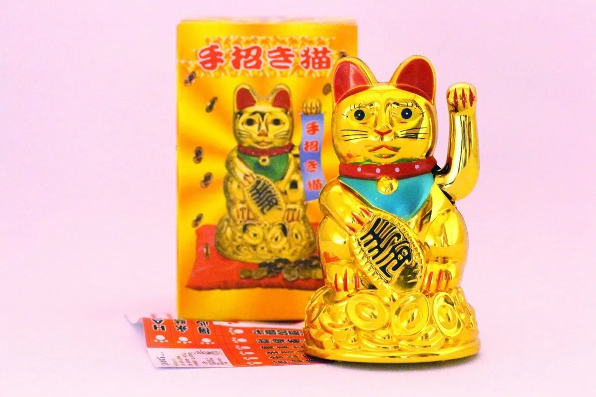 Este gato japonés de la buena suerte es un divertido gato con una de sus patas levantada a la altura de la oreja y con la palma hacia delante, gesto japonés para llamar a alguien y pedirle que se acerque a nosotros. El gato es muy querido por los japoneses y es frecuente verlo en cualquier establecimiento o casa japonesa, ya que se cree que llama a la prosperidad, la felicidad, el éxito o el dinero.