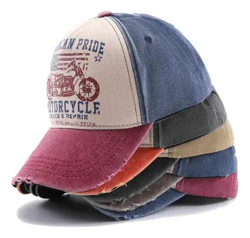 Gorra de moda unisex, calidad premium Incluye: 1 gorra Material: Algodón Estilo: Urbano, gastado, vintage Modelo: American Pride Motorcicle