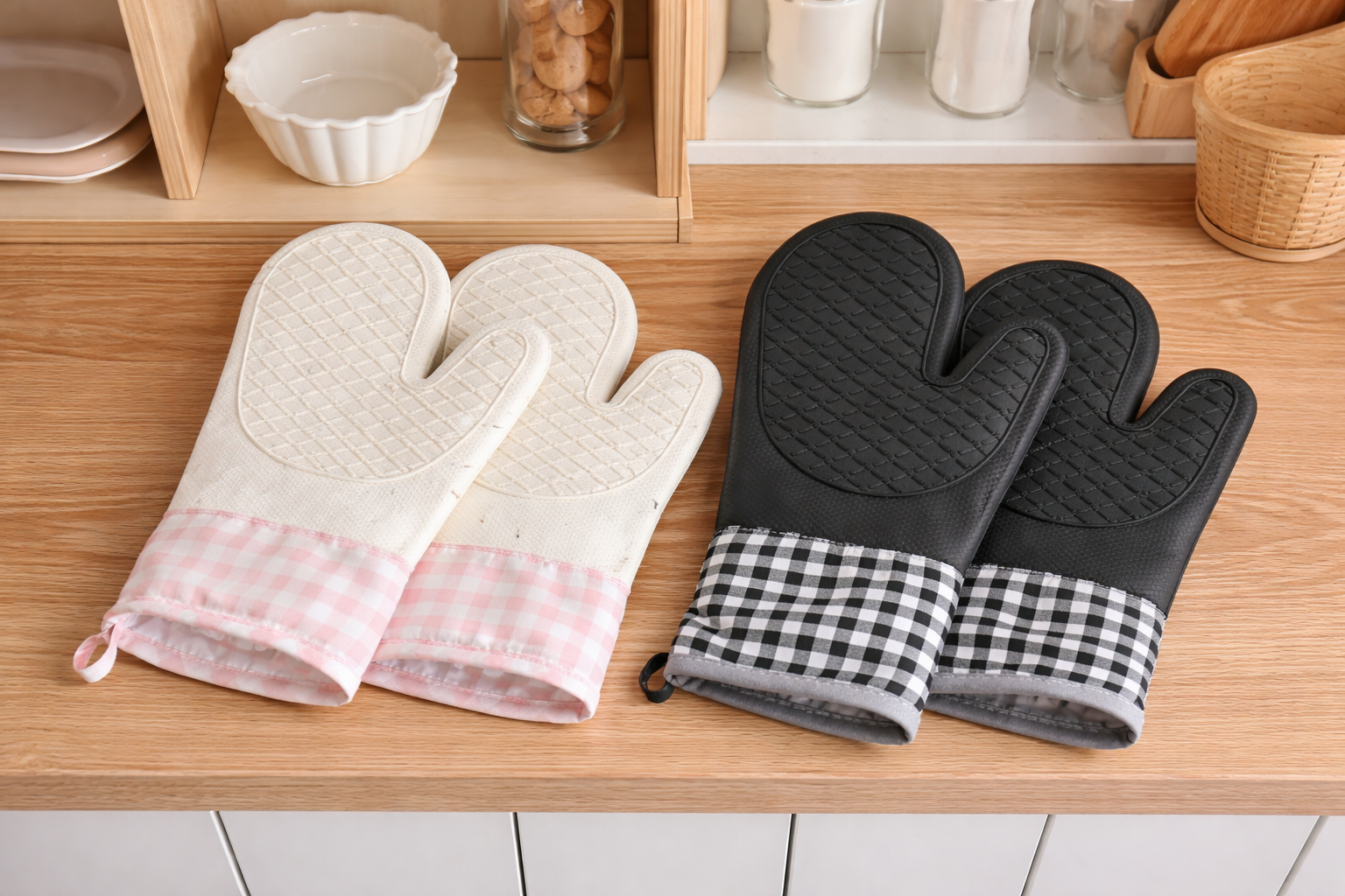Guantes De Silicona Para Cocina Blanco y Negro Gn-0166
