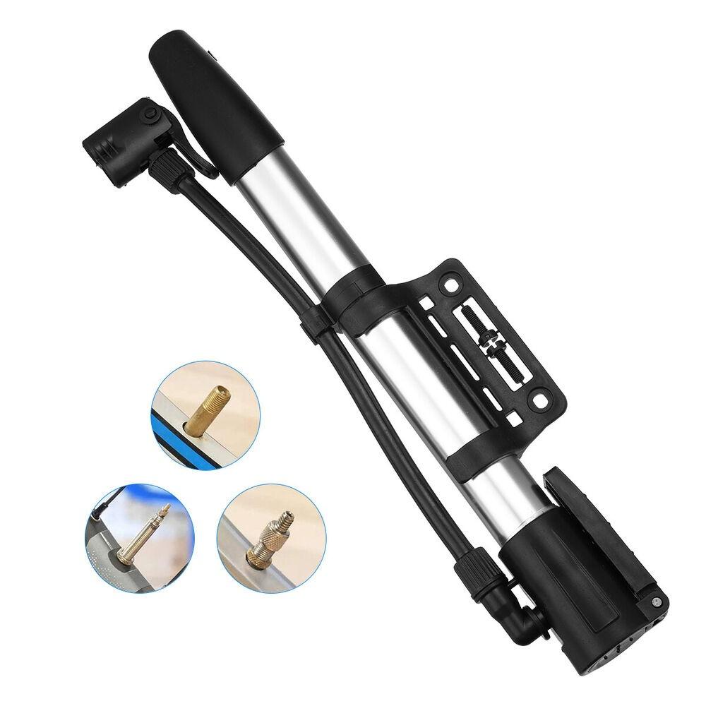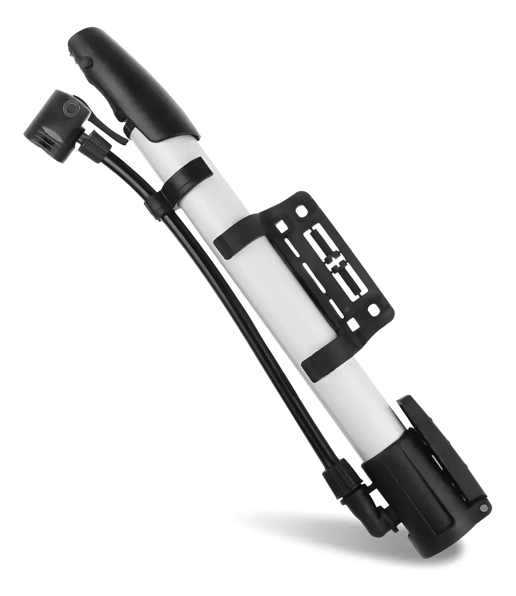 Inflador De Mano O Pie Para Bicicleta Pelota Moto Colchones Doble Valvula Con Pico Mini inflador multiuso liviano y facil de transportar, que cuenta con doble valvula, manguera flexible, pico y soporte para sujetar al caño de la bici. Es ideal para inflar neumaticos de bicis, pelotas, colchones, globos, y lo que necesites que no tenga mucha presion. Su material constructivo es plastico y aluminio de alto rendimiento, para una presión máxima de 100psi.