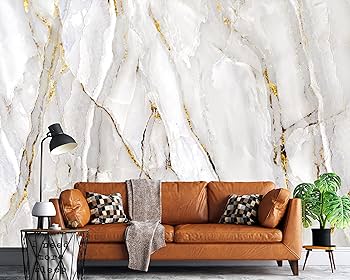Lamina Vinilo Simil Marmol Blanco Lineas Doradas 40*80 BR076L