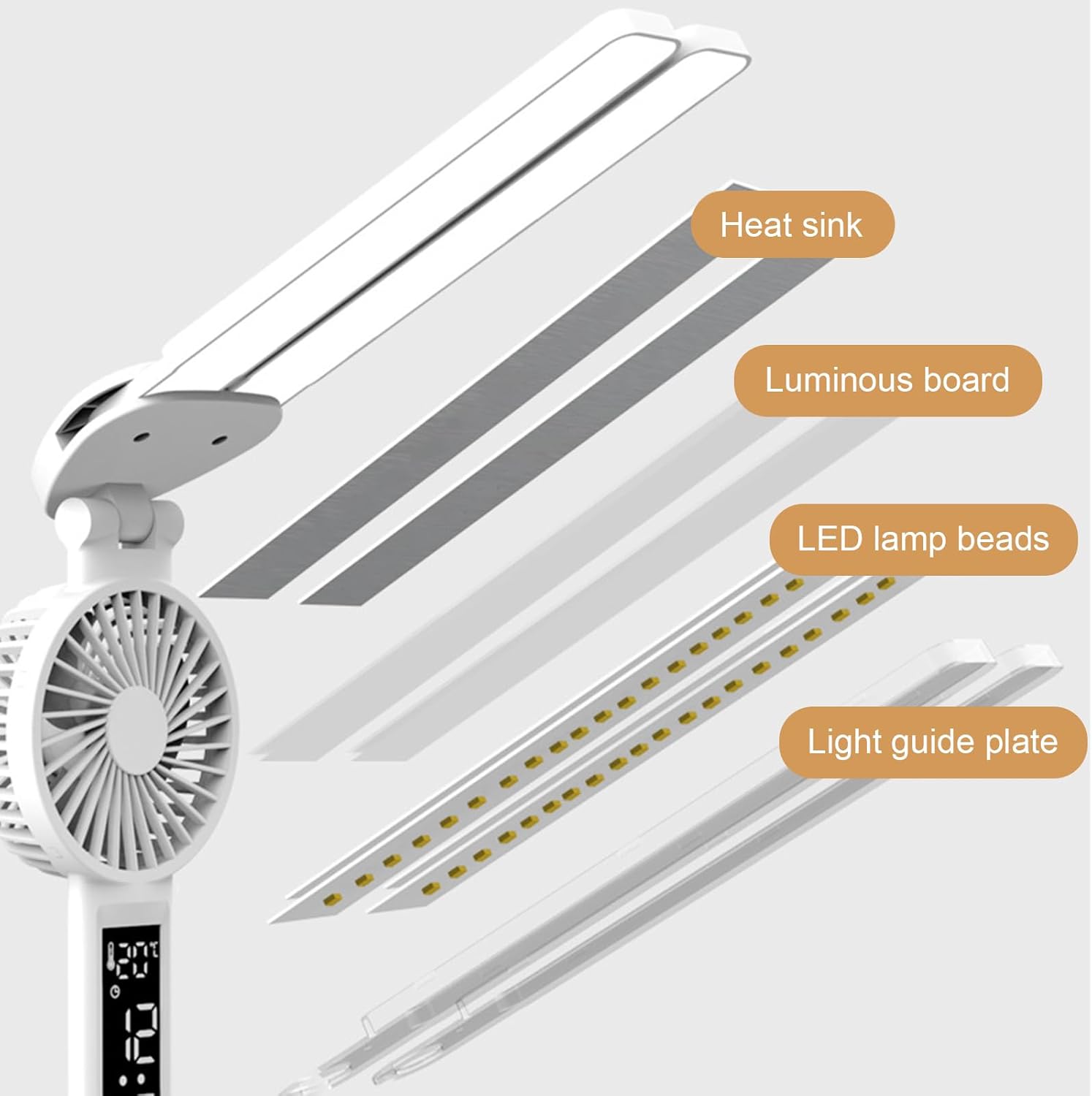 - Diseño de doble propósito: nuestra lámpara de mesa de doble cabezal y mini ventilador incorporado brindan una iluminación brillante y un flujo de aire constante para mantenerte concentrado y fresco, mejorando tus sesiones de estudio.