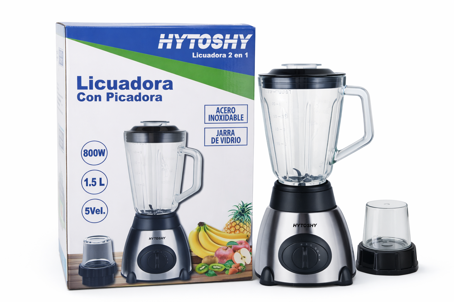 Licuadora Con Picadora 800W 1.5L 5 Niveles Hytoshy Jarra de Vidrio