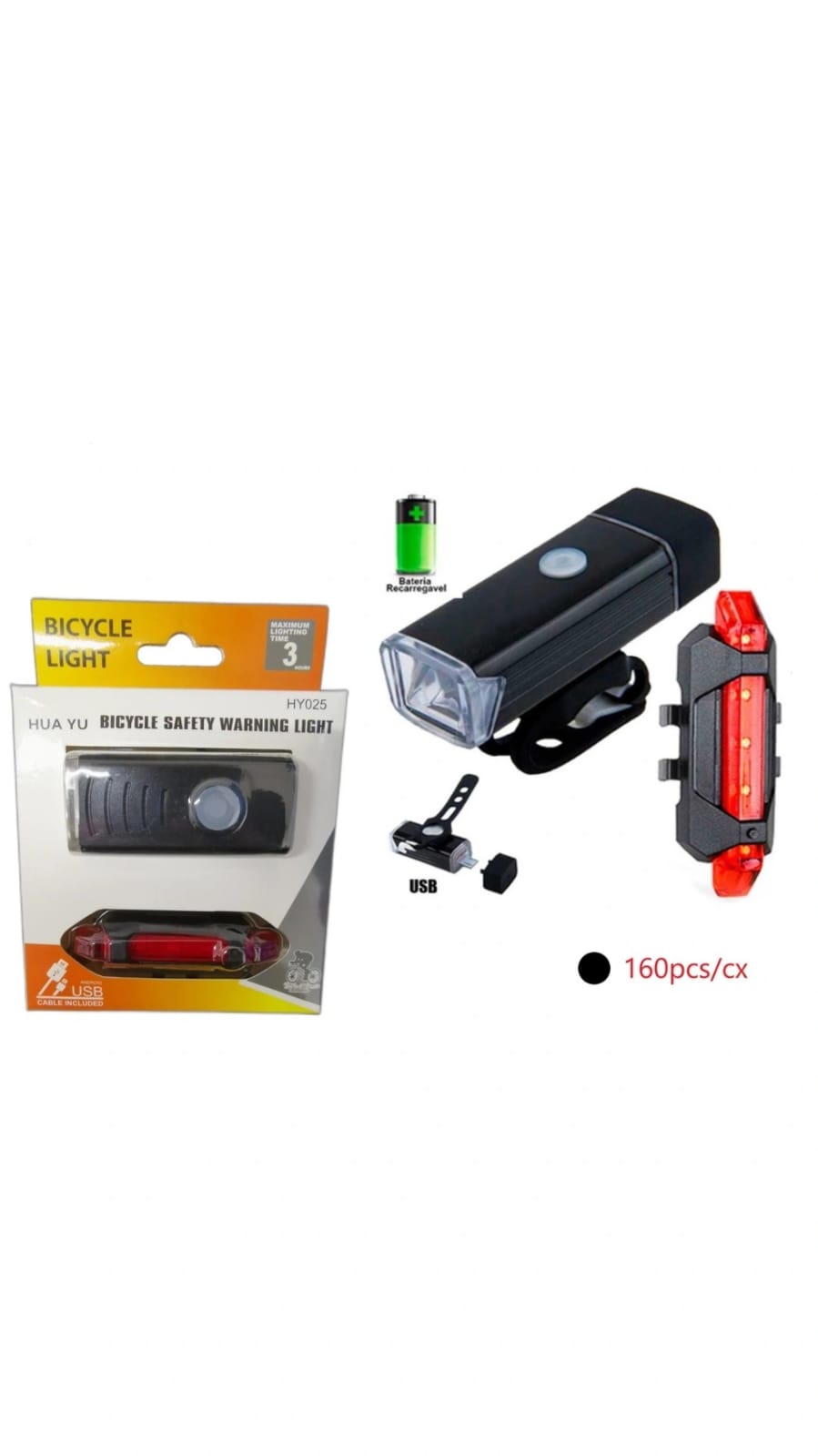 El producto en la imagen es una Luz de Seguridad para Bicicleta Hy025, la cual incluye un cable USB para carga.