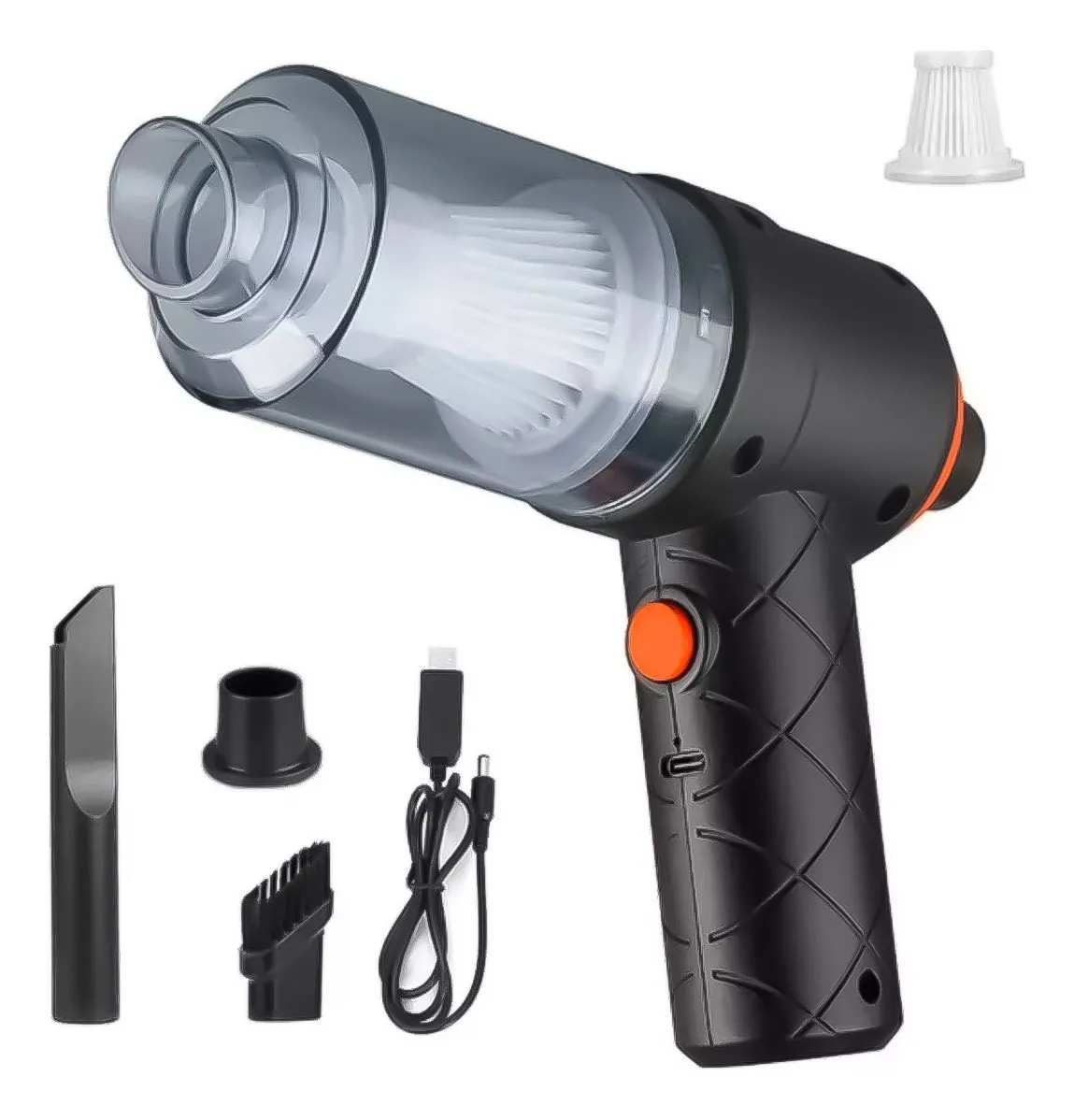 Esta aspiradora inalámbrica portátil ofrece una potente succión de hasta 6000 Pa, ideal para una limpieza profunda y eficiente en todo tipo de superficies. Su motor turbo de alta velocidad con doble canal garantiza un rendimiento duradero y constante.