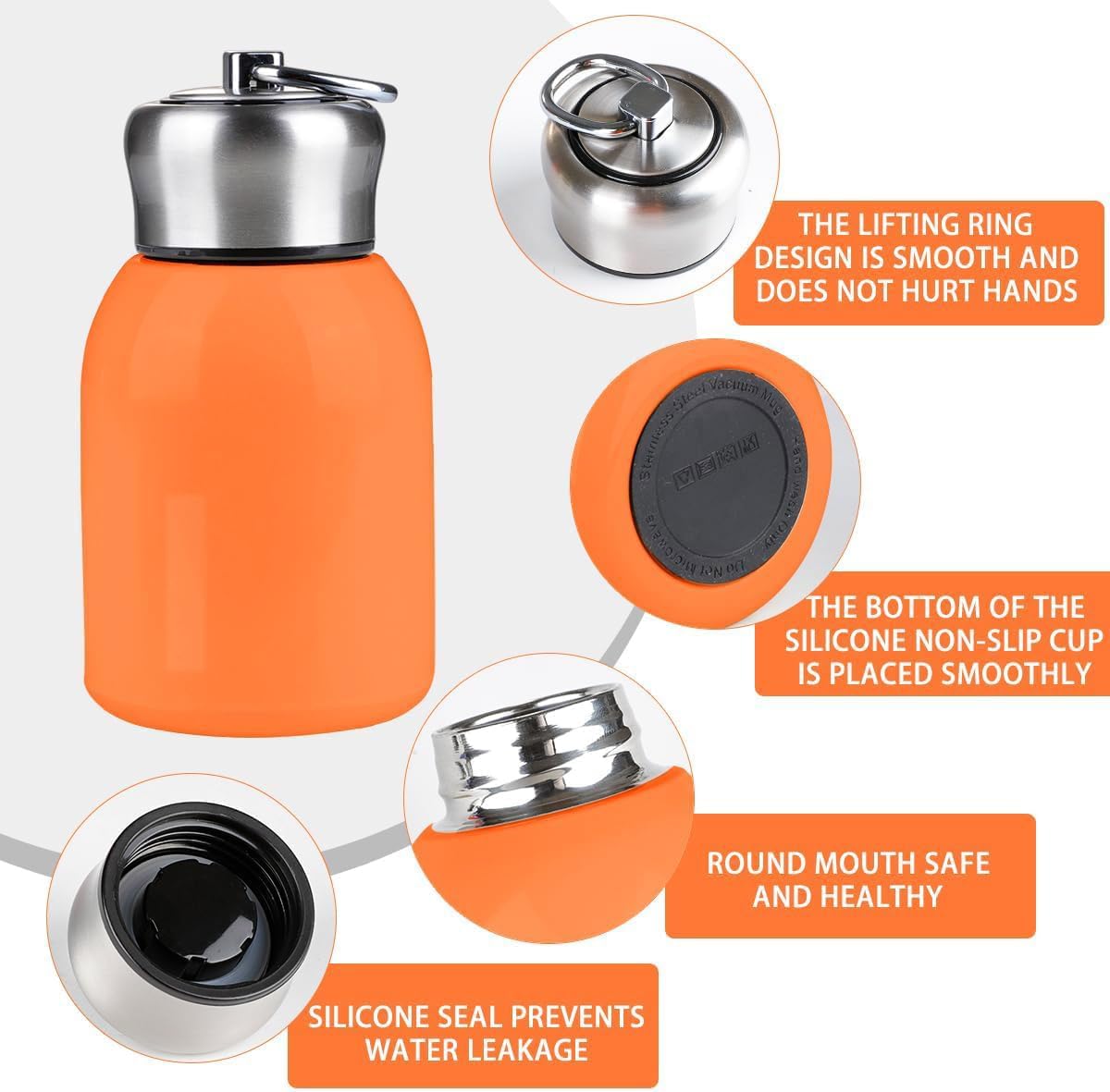 - 【Gran acero inoxidable】: el mini termo está hecho de acero inoxidable 304 de alto estándar, duradero y fácil de limpiar. Sin BPA, que son más seguros y ligeros que usar botellas de agua de plástico o vidrio de 8/18. La técnica de fabricación especial se utilizó para hacer que el cuerpo sea ultraligero y compacto.