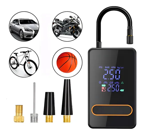 Ofrece una presión máxima de 150 PSI, siendo apta para inflar neumáticos de bicicletas, motocicletas, autos pequeños y medianos, además de pelotas y otros inflables.