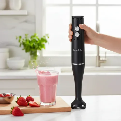 La Batidora Mini Pimer de Mano Luma Bella es el aliado perfecto para quienes buscan rapidez y eficiencia en la cocina. Con una potencia de 500 W, este modelo LB-52015 es ideal para batir, licuar, mezclar o picar una variedad de ingredientes con facilidad. Su diseño compacto y ligero permite un manejo sencillo y cómodo, facilitando la preparación de salsas, batidos, purés y sopas en minutos.