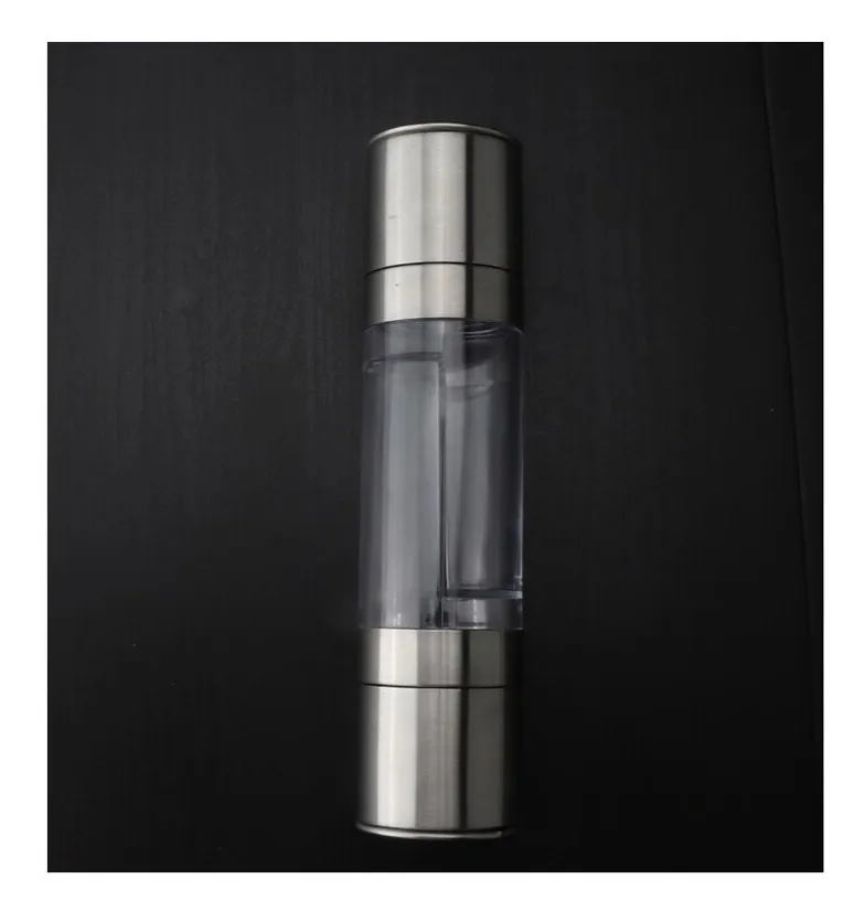 ESPECIFICACIONES Producto: W-201 Tamaño del producto: 53 X 220mm Peso del producto: 258g Capacidad del producto: 80ml X 2 Material del producto: Cuerpo: acero inoxidable #201 + plástico ABS Molinillo: Núcleo de rebabas cerámicas Contenedor: Acrílico Tapa: acero inoxidable #201 + plástico ABS