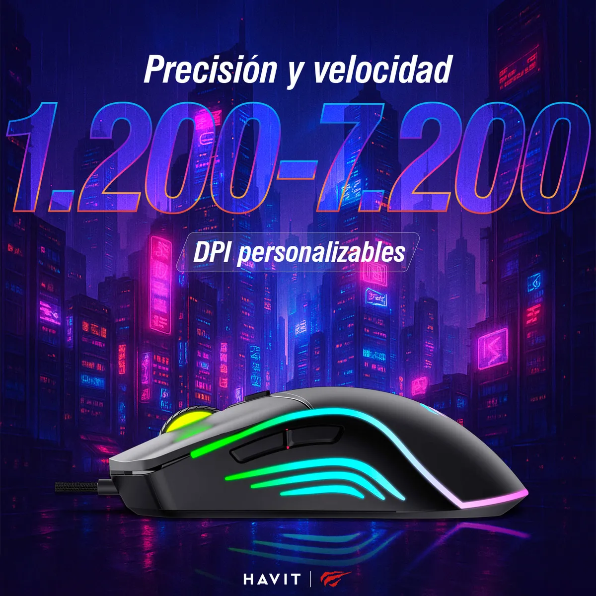 Mouse Gamer Havit Ms1029 Rgb Negro