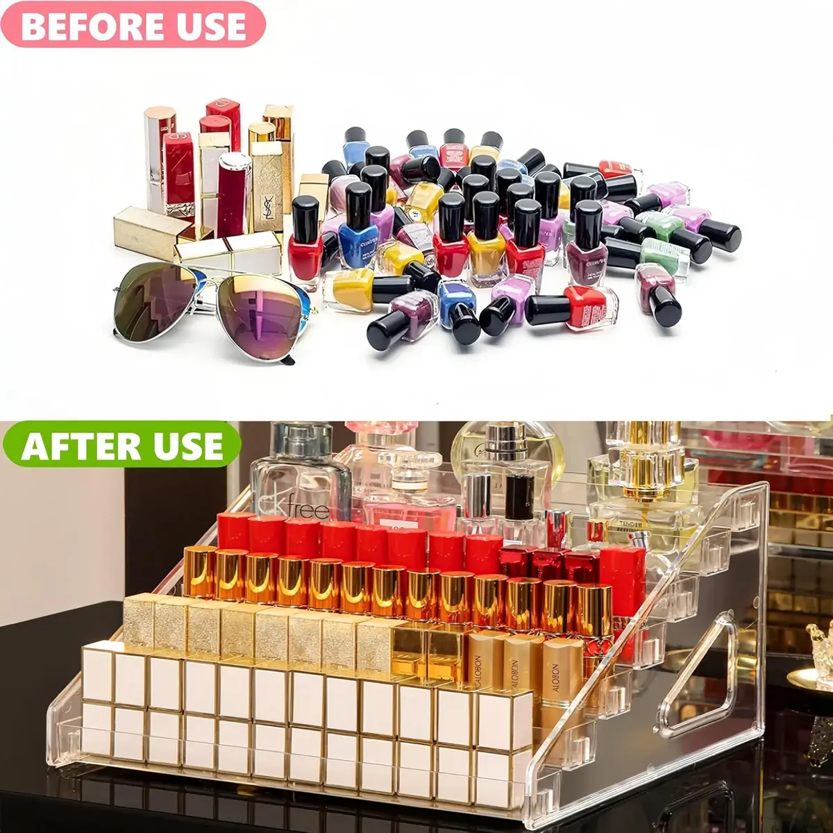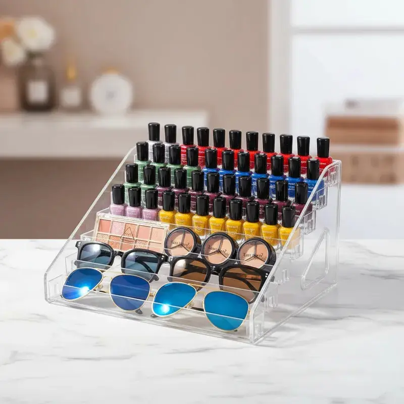Organizador Y varios niveles: Reúna los artículos esenciales for el día a día o los objetos pequeños en un solo lugar. Ideal for cosméticos, aceites esenciales, esmaltes Y uñas, gafas Y sol y carteras. Ayuda a mantener la encimera ordenada y organizada. Fabricación duradera: Fabricado con acrílico y plástico ecológicos Y alta calidad for un uso duradero y una clara visibilidad del contenido. Se limpia fácilmente con agua y jabón suave.