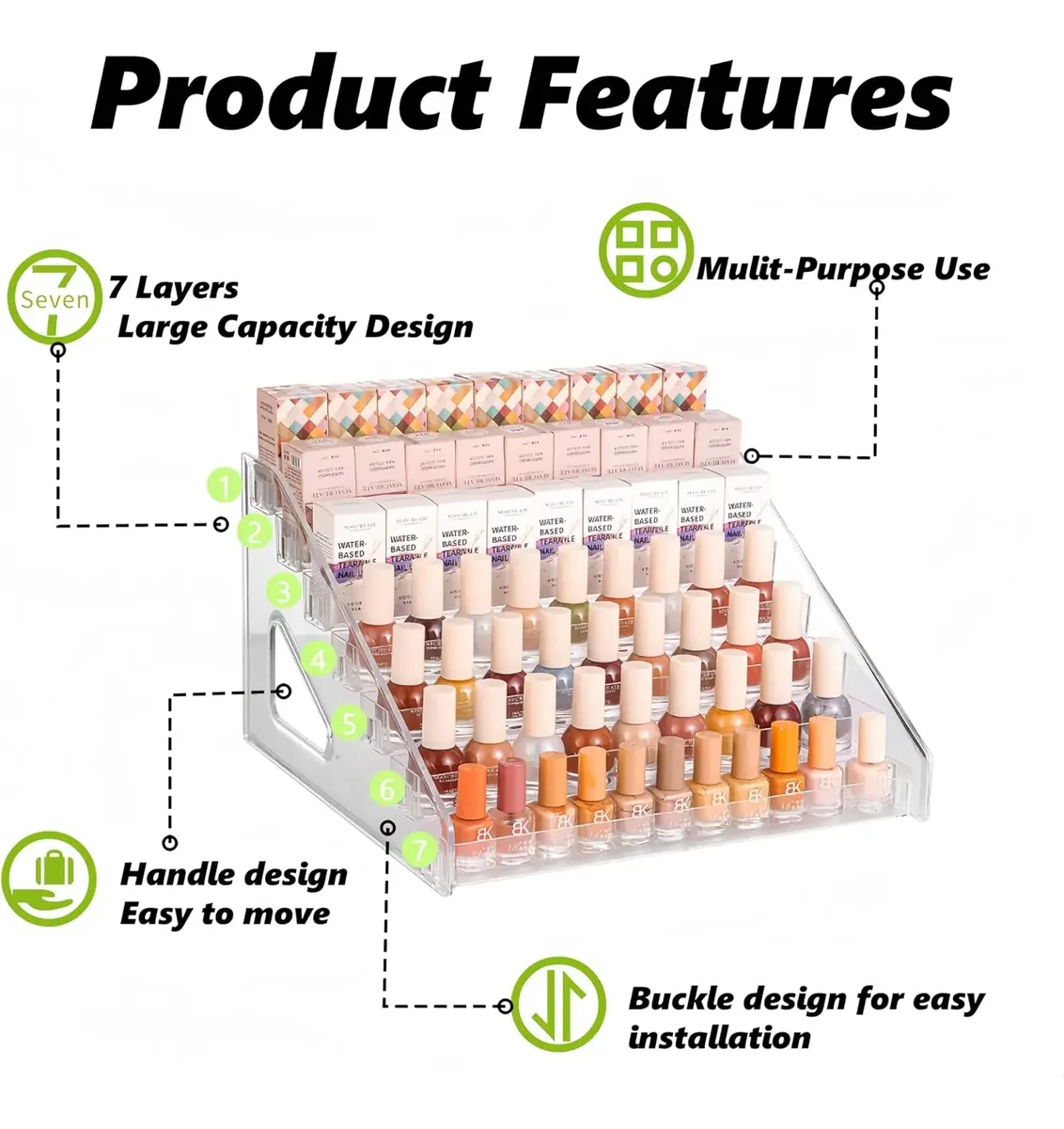 Organizador cosmético acrílico Y 7 niveles con expositor transparente for esmaltes Y uñas Organizador cosmético for exponer esmaltes Y uñas Montaje en 1 minuto: este organizador for esmaltes Y uñas se monta sin esfuerzo en solo un minuto. No se necesitan accesorios complicados. Fácil Y instalar.
