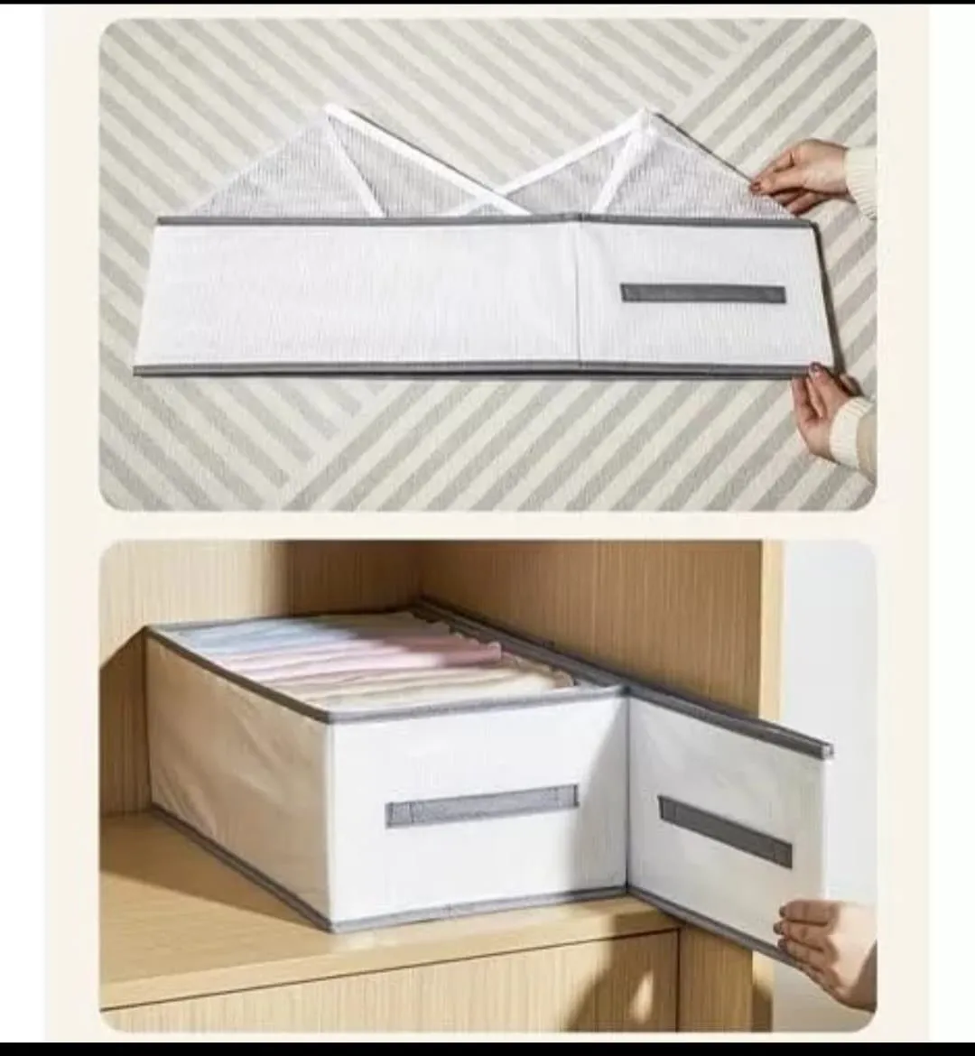 ¡Dale orden a tu placard con nuestro práctico Organizador de Ropa con 9 divisiones! Diseñado específicamente para optimizar el espacio y mantener todo en su lugar, este organizador es perfecto para doblar y almacenar pantalones, jeans, leggings o cualquier otra prenda que necesite un lugar específico. Fabricado con materiales de alta calidad, resistentes y duraderos, su diseño compacto permite aprovechar al máximo el espacio de tu placard, manteniendo tus prendas organizadas y al alcance de la mano. Además, su estructura facilita la visualización de cada artículo, ayudándote a elegir rápidamente lo que necesitas sin desordenar todo. Características: 9 divisiones amplias: Perfectas para pantalones, shorts, camisetas o incluso toallas. Estructura rigida resistente: Hecho de material duradero que mantiene su forma. Diseño versátil: Ideal para colocarlo en el estante del placard, cajones o sobre cualquier superficie. Optimiza el espacio: Ahorra espacio y mantiene tu placard ordenado. Fácil acceso: Encuentra rápidamente lo que buscas gracias a su diseño abierto.