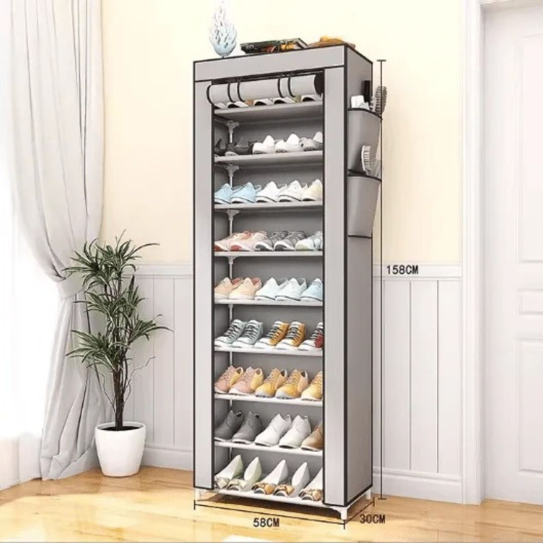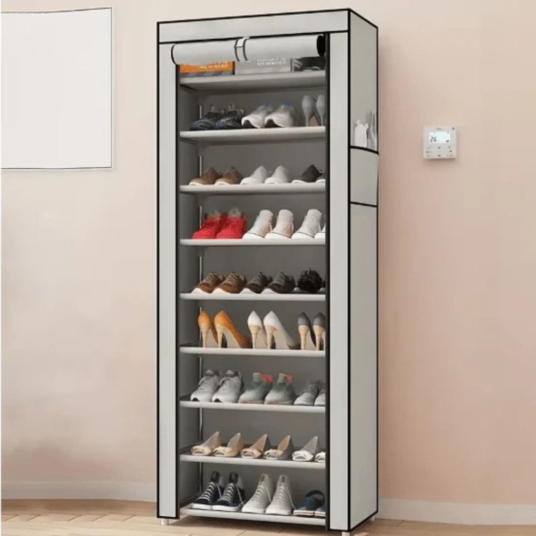 • El diseño de una sola fila de 10 capas proporciona un amplio espacio de almacenamiento para zapatos y accesorios.