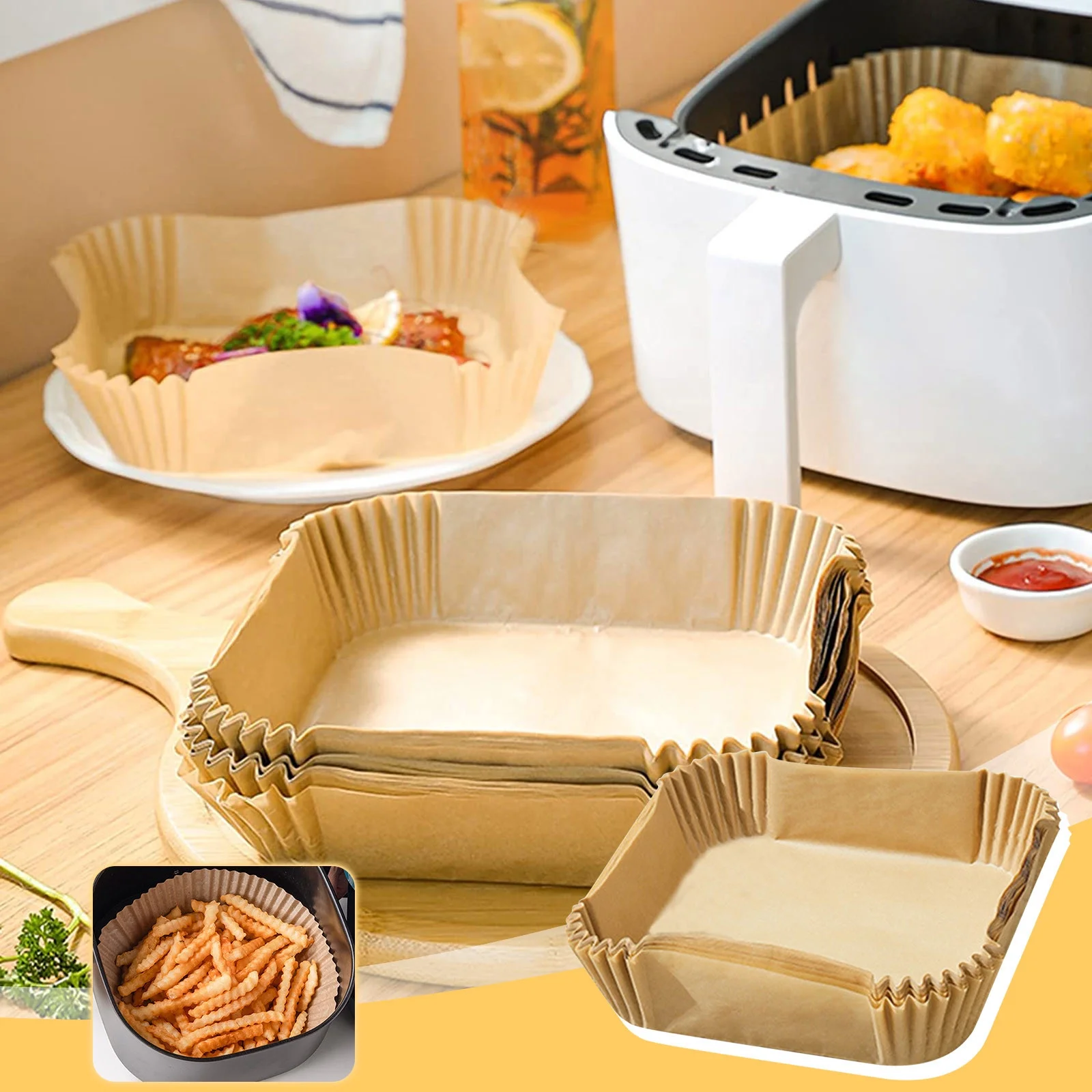 Papel Para Freidora De Aire Cuadrado 22cm AJCF0018 50PICS