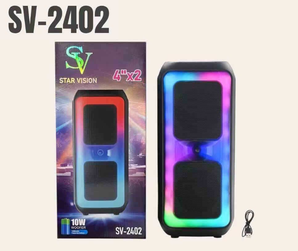 Características Este parlante de 4″ x2 posee un rango de transmisión inalámbrica de 10m. Soporte máximo de memoria (USB/SD) 32GB Respuesta de frecuencia 100hz -20khz Relación señal – Ruido: 85dB Rango de escaneo de FM:87,5 – 108,0 MHz Carga USB : dc5v Tamaño 4″x2 Potencia de salida: 10w Función de soporte: BT TWS FM TF USB AUX Tamaño del embalaje 176x171x392mm Medidas del parlante 38cm de alto x 6cm de ancho