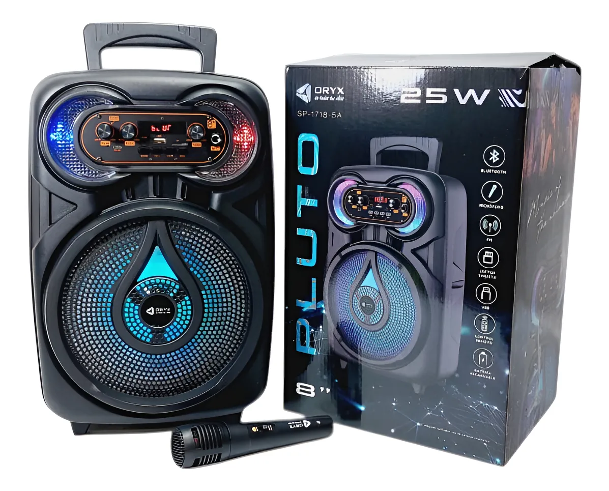 El Parlante ORYX Pluto 8” combina potencia, diseño y portabilidad para ofrecer una experiencia de sonido superior. Con una potencia de 25W RMS, brinda graves profundos y agudos definidos, ideales para acompañar tus fiestas, reuniones o eventos.
