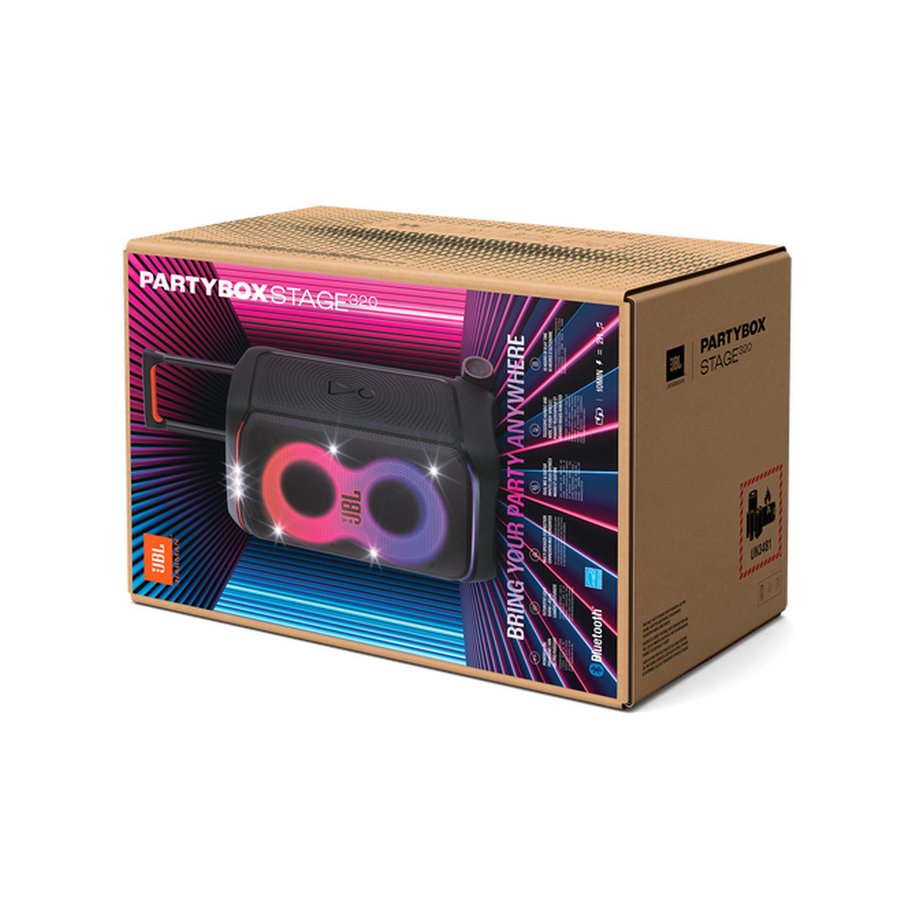 Con el JBL PartyBox Stage 320, la fiesta te sigue a donde vayas. Este altavoz portátil está diseñado para transformar cualquier espacio, ya sea en interiores o al aire libre, en una vibrante pista de baile. Gracias a su potente sonido JBL Pro y sus graves profundos, logra que todos se muevan al ritmo de la música, mientras que un espectáculo de luces adaptable con estrellas, senderos de luz fríos y efectos estroboscópicos sincronizados con el ritmo añaden un toque visual impresionante a cualquier evento.