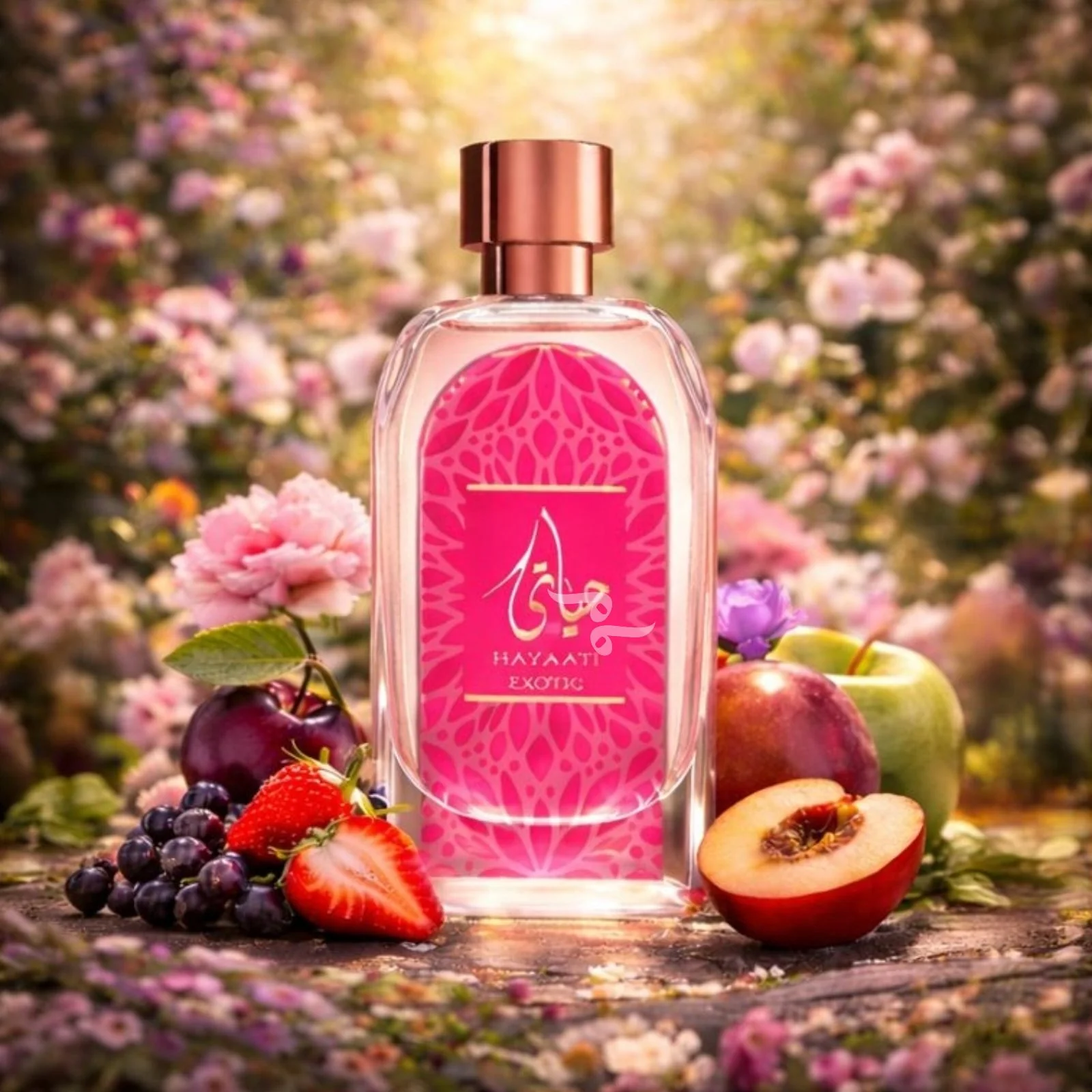 Hayaati Exotic de Ard Al Zaafaran se abre con una vibrante explosión de grosella negra, ciruela, fresa y nectarina que capta la atención al instante. El corazón se despliega con delicados lirios de los valles y frescas notas de manzana, creando un refinado carácter floral-frutal. Una lujosa base de ámbar, pachulí, haba tonka y vainilla aporta profundidad y una sofisticación duradera. Esta fragancia, magistralmente compuesta, equilibra la intensidad afrutada con matices cálidos y sensuales.