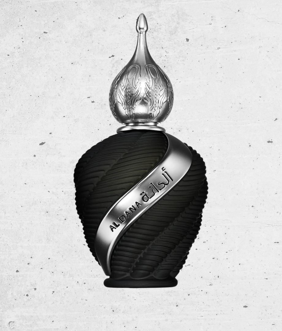 Al Dana abre con una explosión de cítricos y frutas tropicales, realzada por un toque especiado, evoluciona hacia un corazón floral y resinoso, y culmina en una base profunda y sofisticada donde predominan notas amaderadas, ahumadas y almizcladas.
