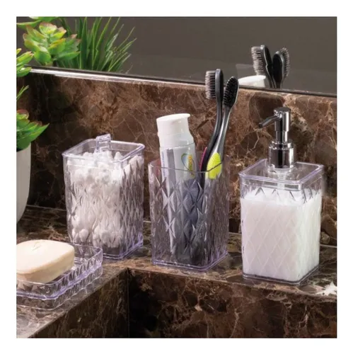 Porta Hisopos Y Algodon Carol Acrilico Con Tapa Labrado Baño ART. 14217/14216/14214/15794/15795