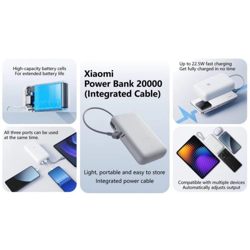 Versatilidad total en conexiones. Tres salidas independientes (USB-C, USB-A, cable integrado) resuelven situaciones multi-dispositivo. Puedes cargar portátiles ultracompactos, consolas portátiles, routers de viaje o accesorios IoT, optimizando tiempos y simplificando tu setup móvil.