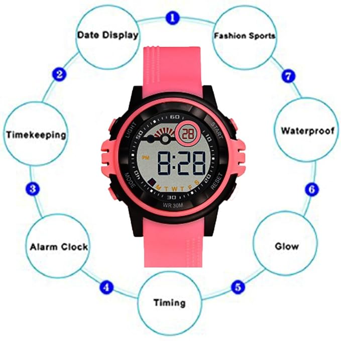 Reloj Para Niños Rosa Zafira Resistente a Agua 30m Pantalla Luminosa