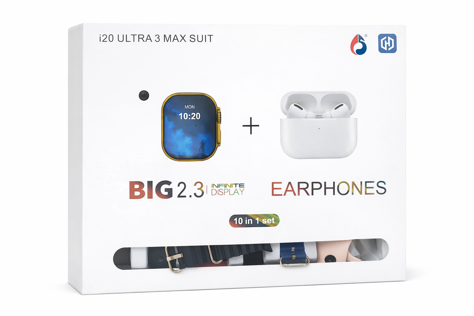 Reloj Y Auricular i20 Ultra 3 Max Suit Big 2.3 10 Mallas E-286