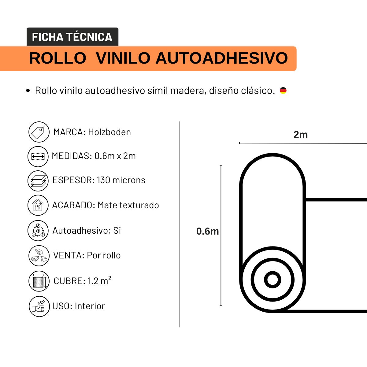 - Medida por rollo: 60cm de ancho x 2mts de largo