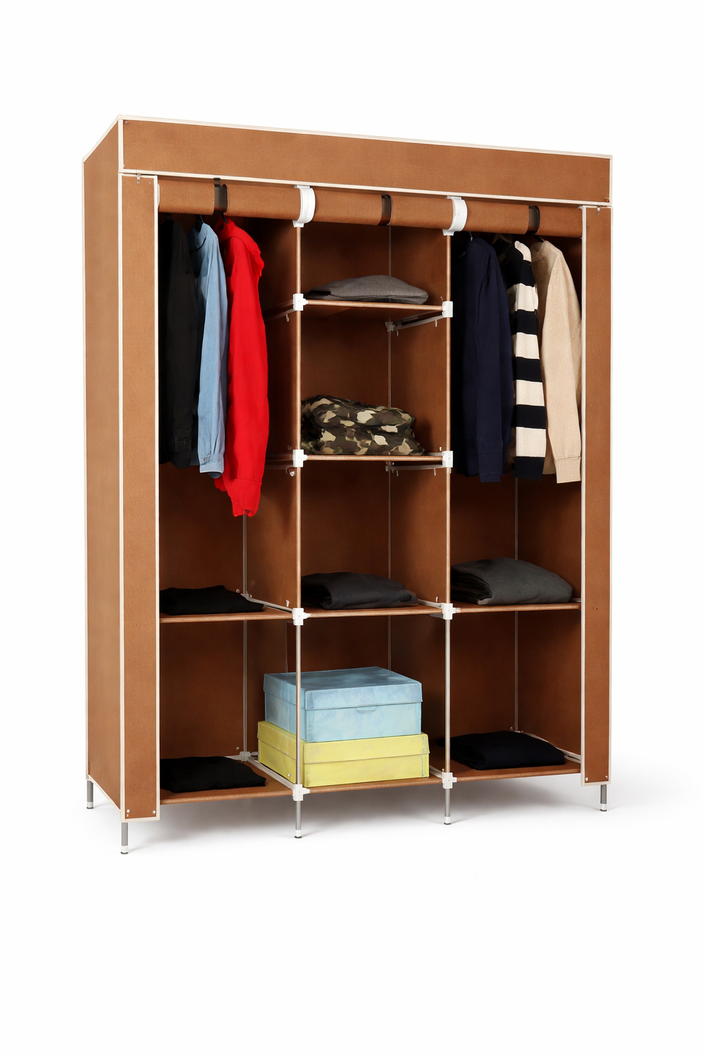 Armario o ropero armable de tela, diseñado para el almacenamiento de ropa y accesorios.