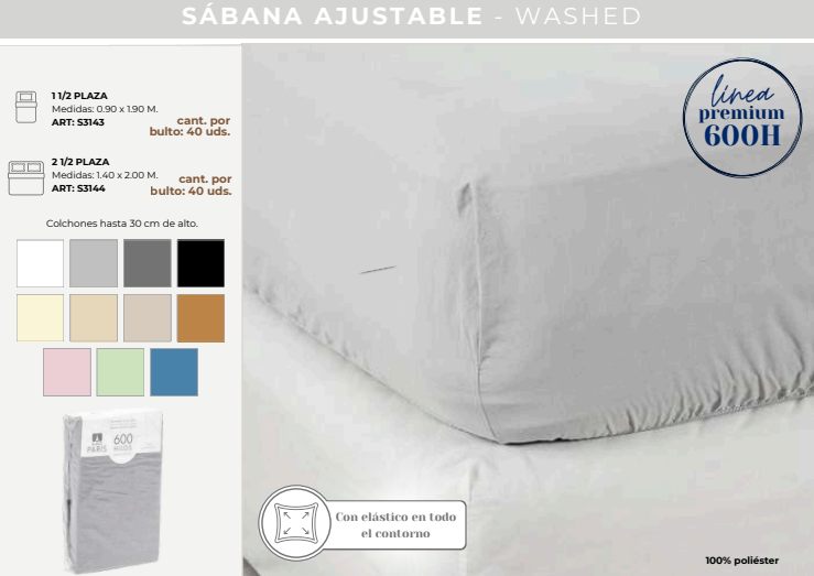 Sabana Ajustable Blanco Paris Basic S3043 0.90×1.90mt